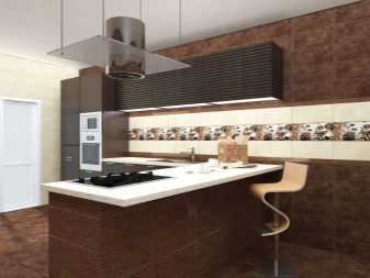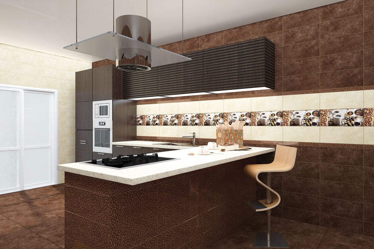 - Escada - the kitchen tile is executed in brown color with imitation of a mosaic and a stone. It will help to create a refined interior with elements of decoration in the antique style.