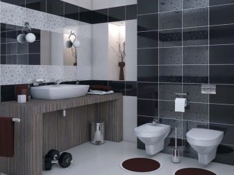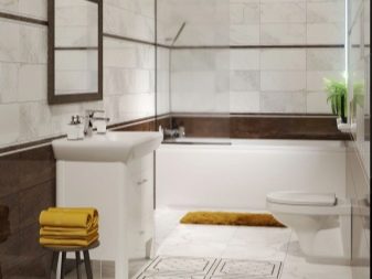 The combination of contrasting shades visually makes the room more voluminous, which is suitable for both “expanding” a small bathroom and for emphasizing the size of a large bathroom.