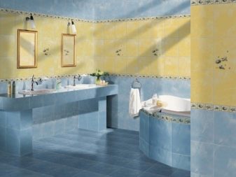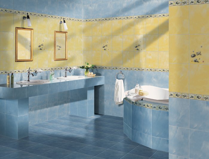 - "Agata" ("Agat") - a feature of this line of glossy tiles is a pattern imitating marble, produced in 4 colors: light green, pink, light yellow and blue. This texture will give the room a bright and calm summer day, visually increasing the size of the bathroom. Available in square (33.3x33.3 cm) and rectangular (20x30 cm) shape.