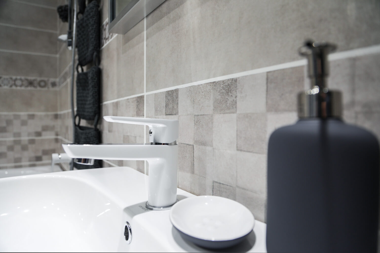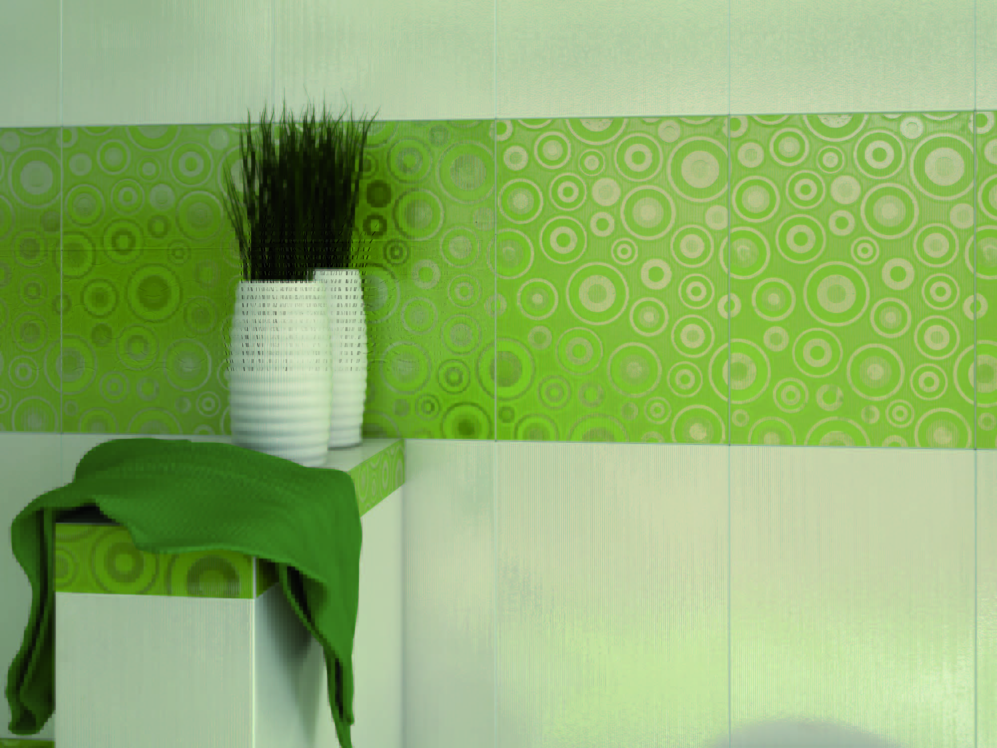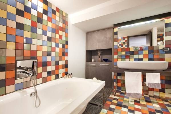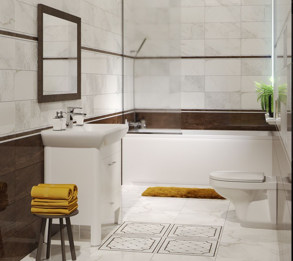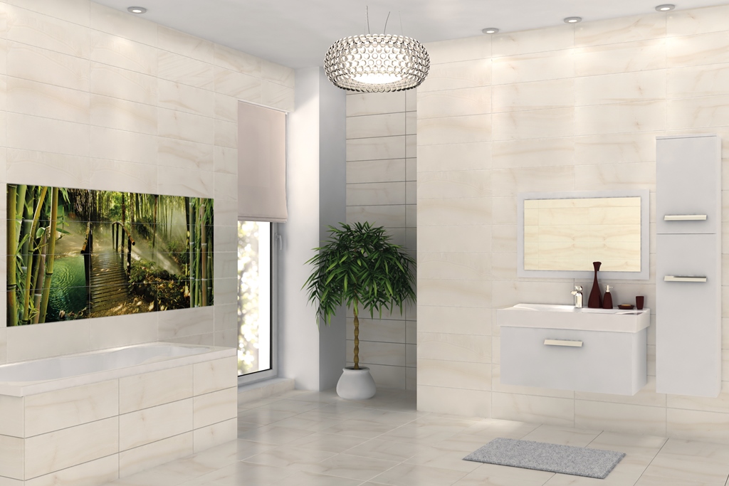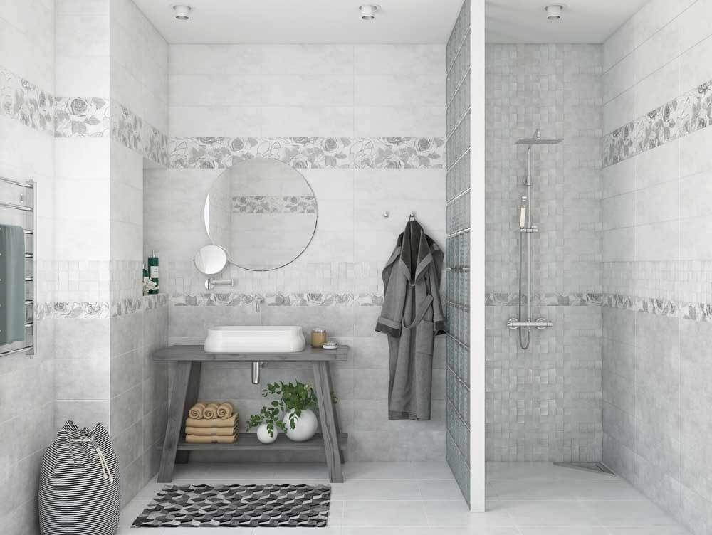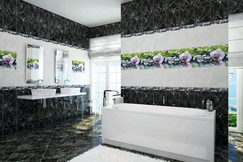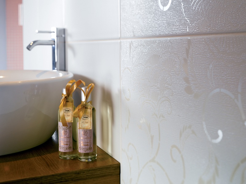 - "Arte" - performed in bright colors with drawings and glass borders. It creates a light and relaxed atmosphere in your bathroom.