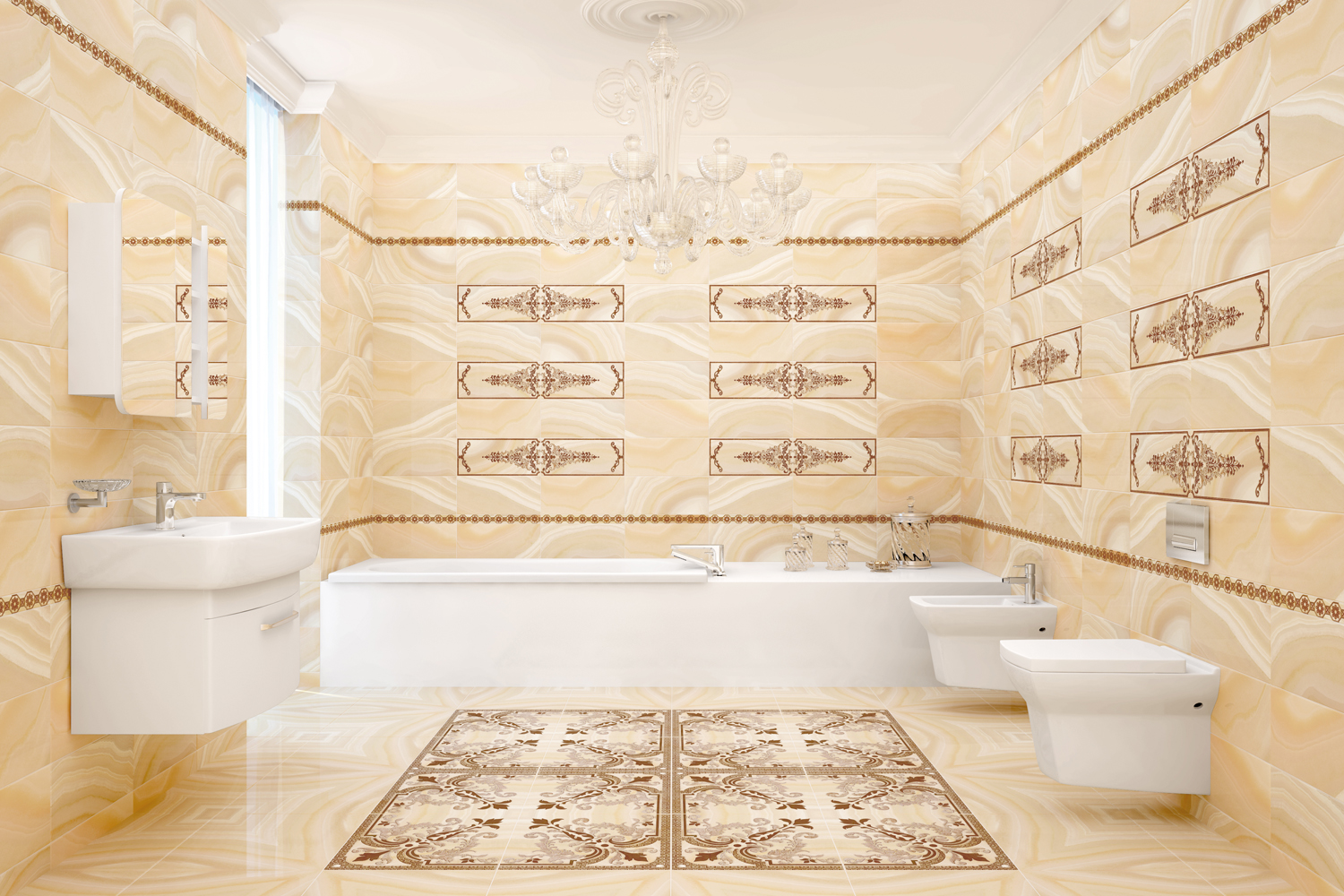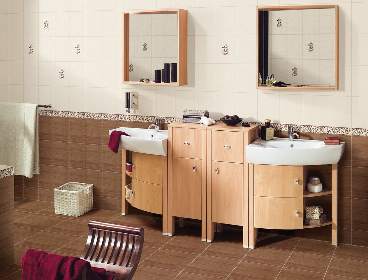 - "Electa" (“Electrics”, “Karina”) - performed in rich colors of pink, beige and brown colors, will create a romantic atmosphere in the bathroom.