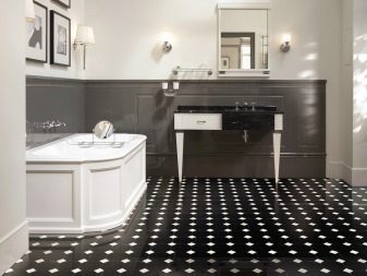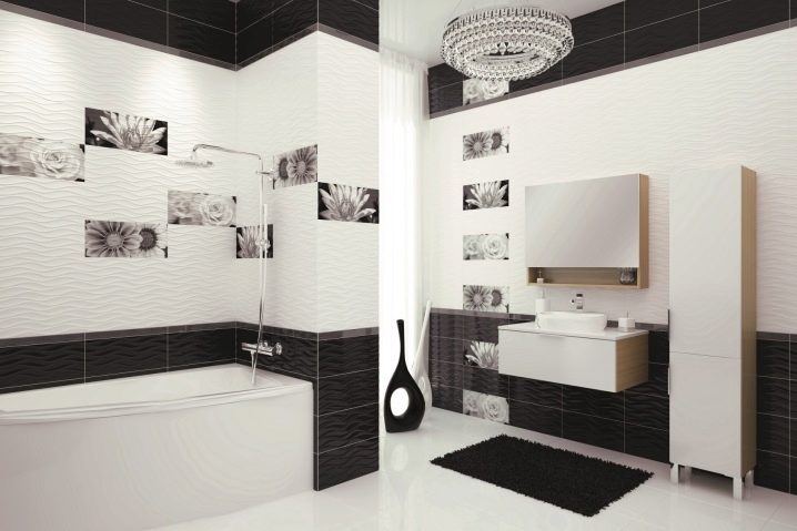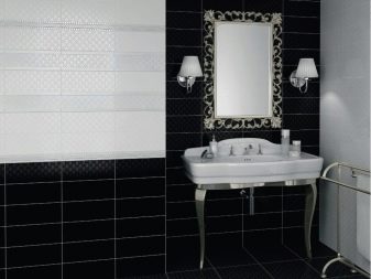 Black and white ceramic tiles are always relevant. It fits well in classic and modern interior. The premises, decorated with such tiles, look stylish and presentable. The combination of colors is universal. It is also suitable for use as a background for bright accessories.