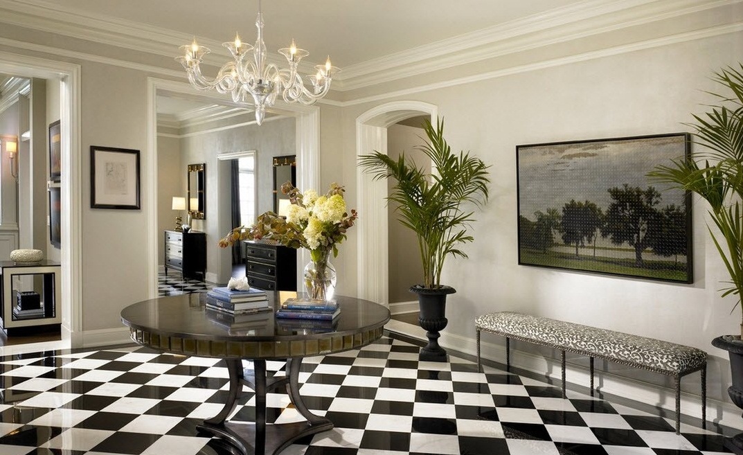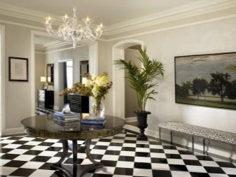 Black and white tiles, lined with stripes across the width of the room, will make the space wider, and laying along the length will make the room more elongated. To add a volume to a room, it is recommended to arrange diagonally.