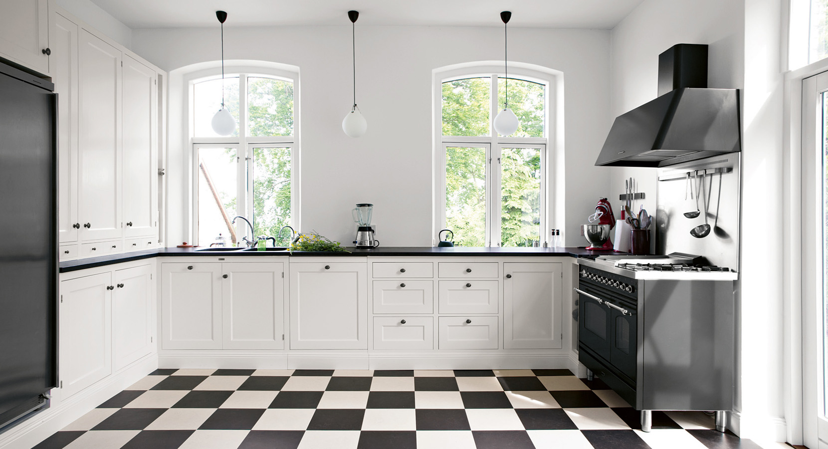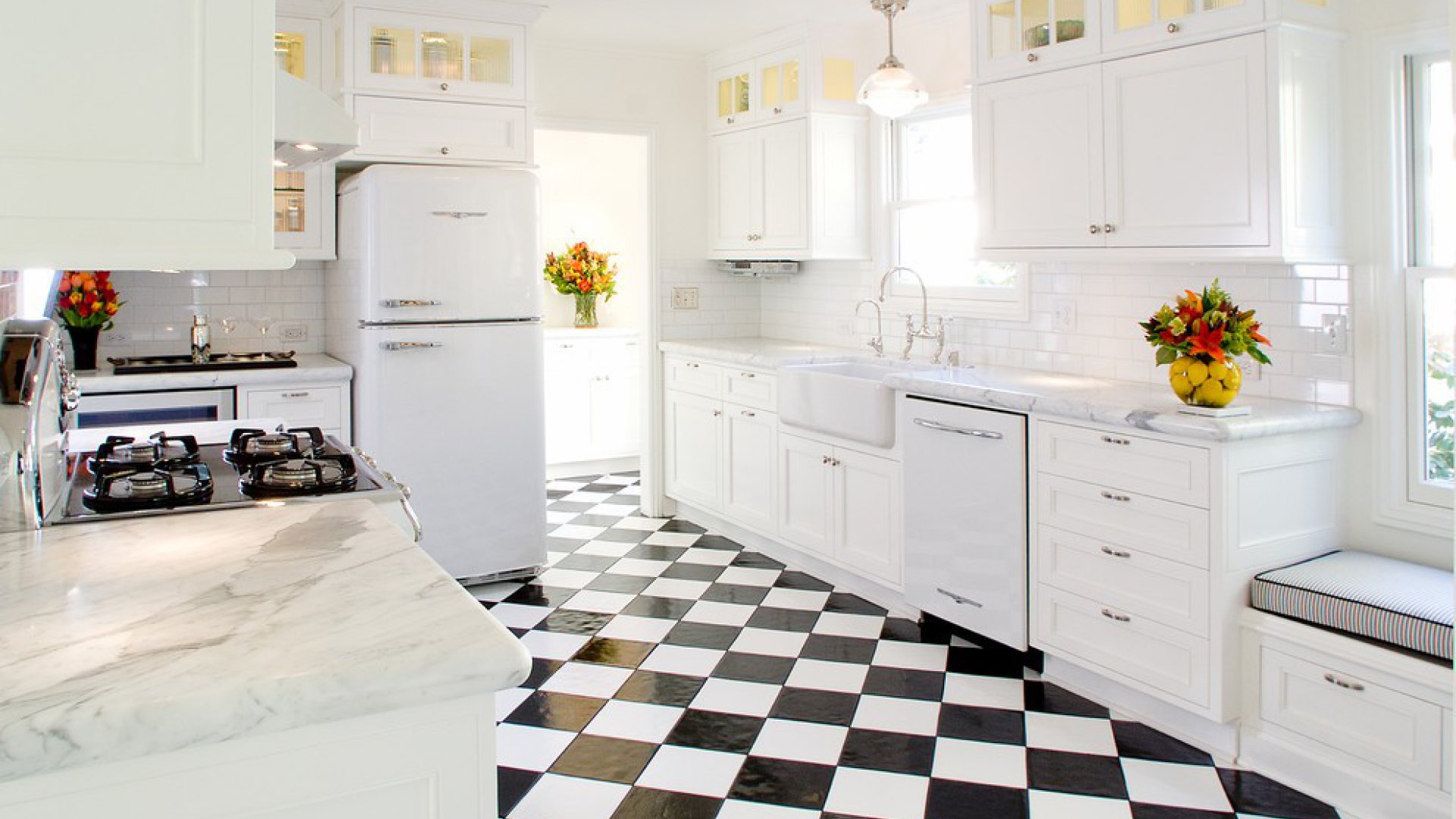 To learn how to use black and white tile in the interior, see the video below.