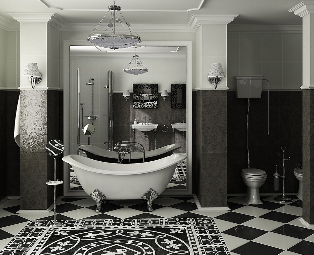 The option of laying black and white tiles depends on the stylistic orientation of the room. When creating a classic interior you should not lay out large areas with these contrasting shades. It is better to veneer some walls with white tiles, and others - with black. In the classics, it is permissible to make only a kitchen apron contrast. The separation of solid walls with contrasting tiles horizontally or vertically will look harmoniously.