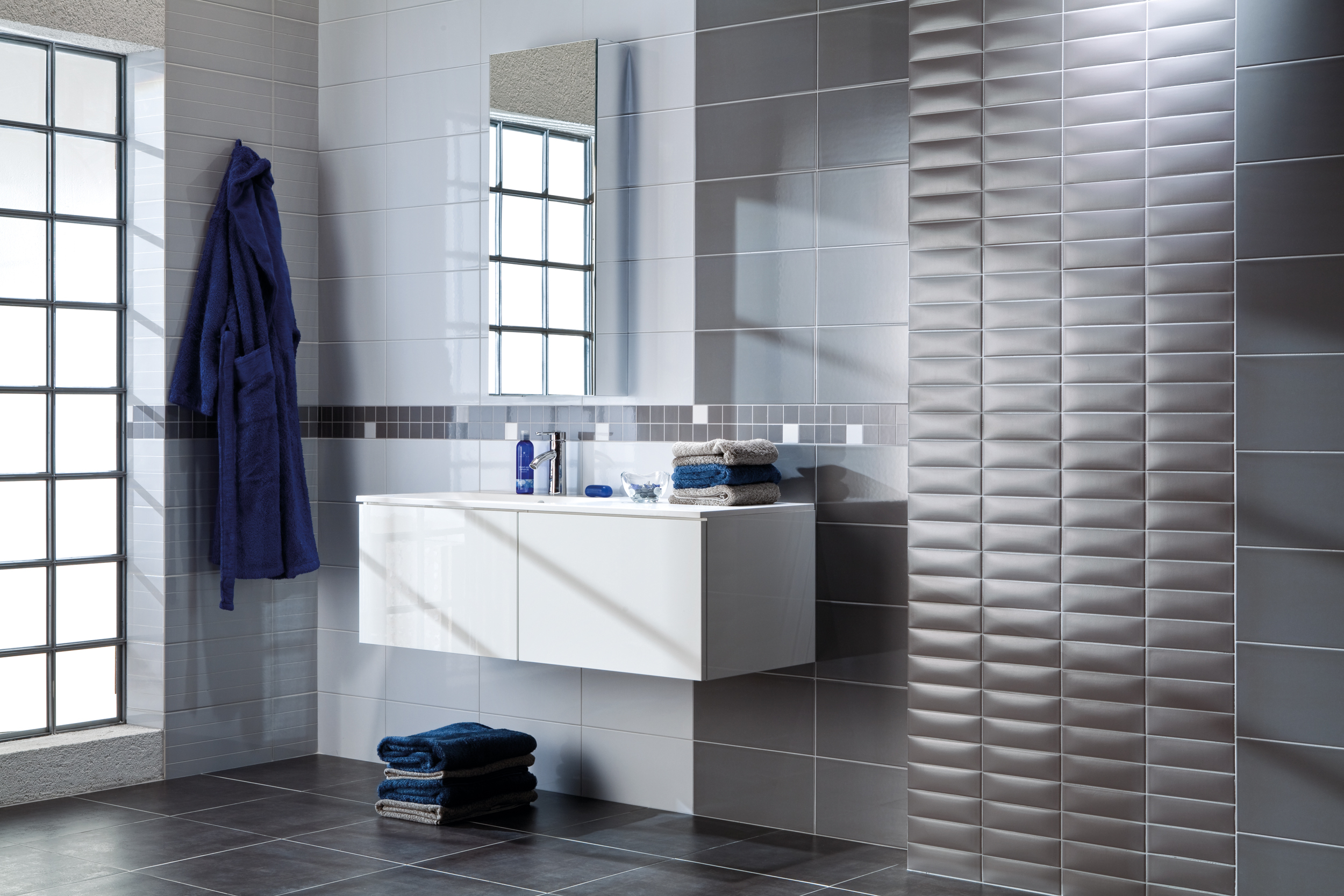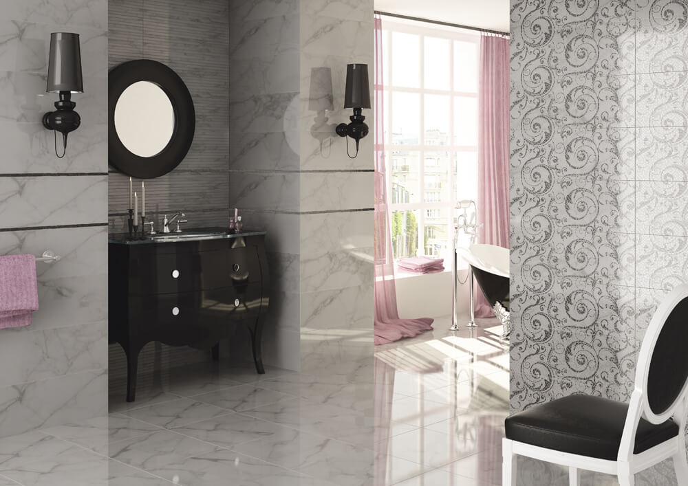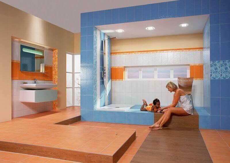 - Glazed tiles are ideal for bathroom walls, and for the floor, embossed or matte products will be the best solution.