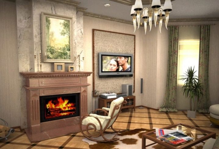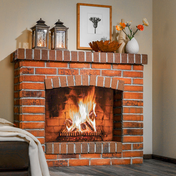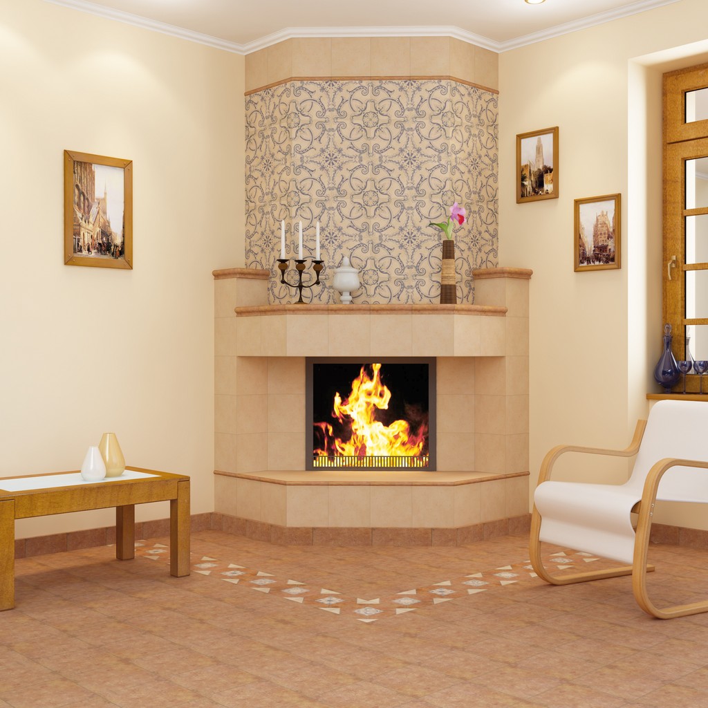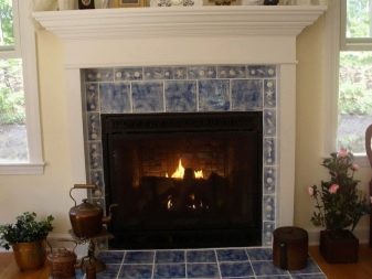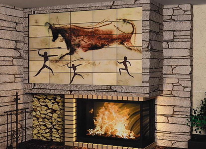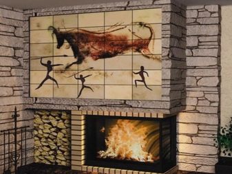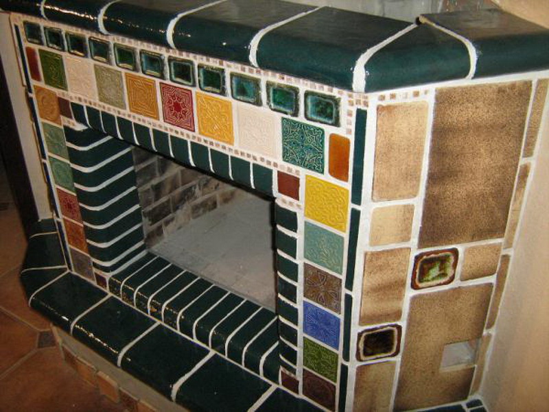 Alternating tiles or creating a certain image allows you to create a distinctive decor on the surface of the fireplace or stove.