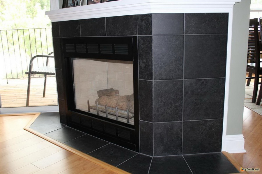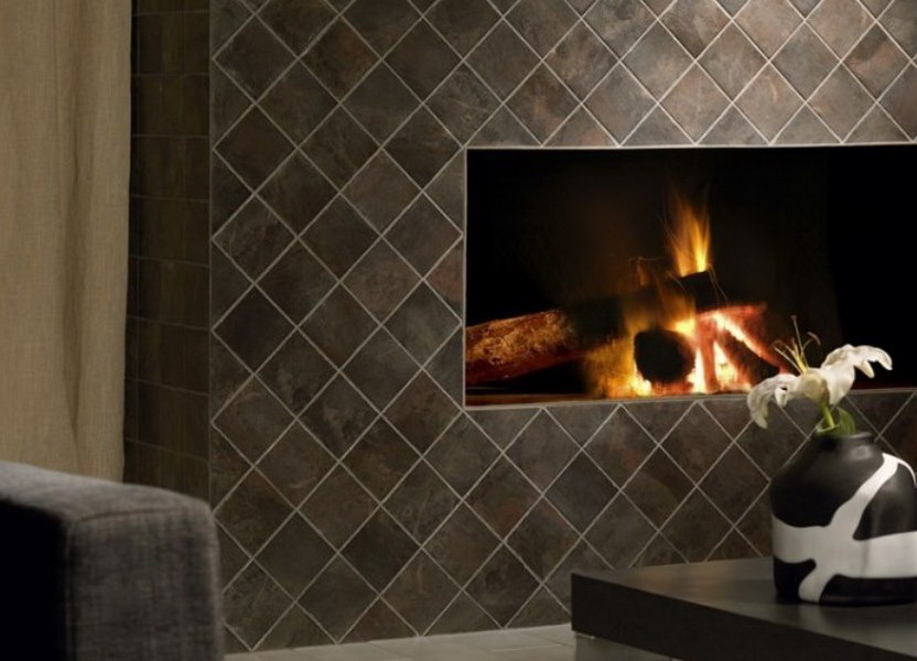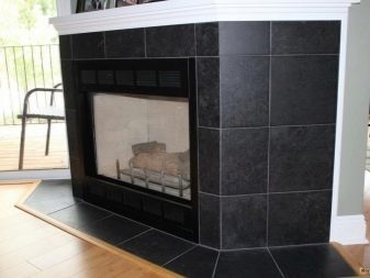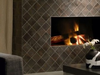 For facing the fireplace also buy stoneware tiles. The material is made of several types of clays - a mixture of quartz sand and marble or granite chips. Salts and oxides of metals work in the role of dyes.The tile has a dense structure and excellent resistance to low and high temperatures. The surface of the material may be different, for example, matte, polished or embossed. This variety gives the finish spectacularity and naturalness.