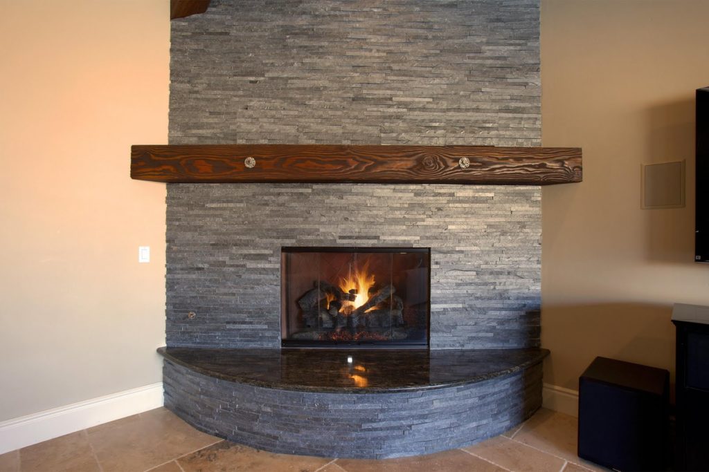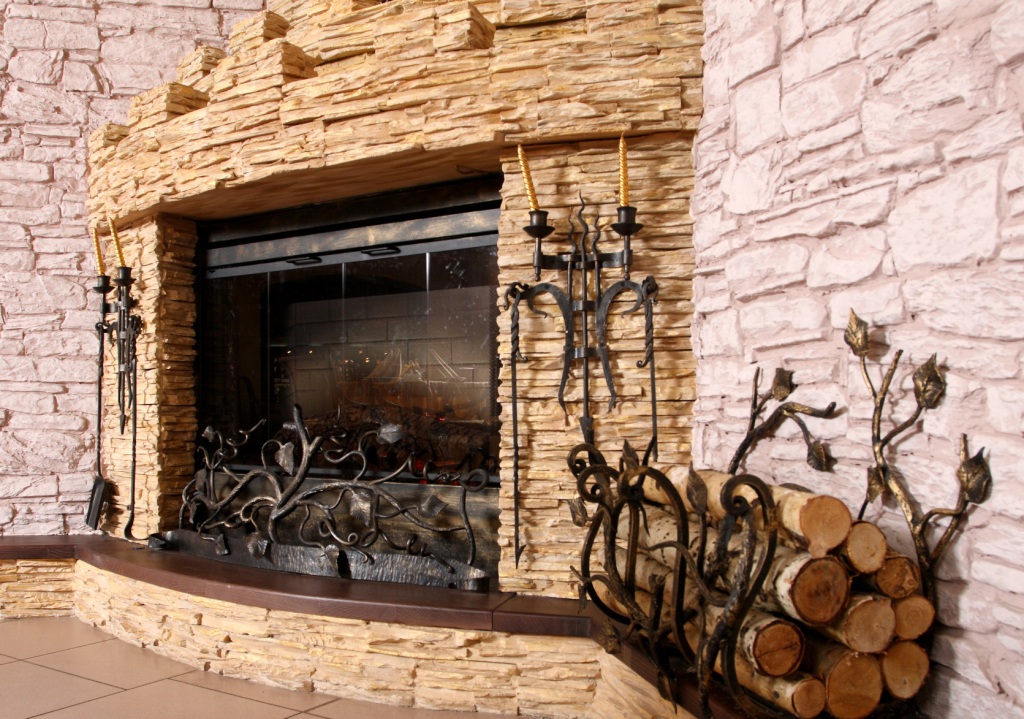 Another excellent option for stoves and fireplaces is fake diamond. This material does not require a high level of professionalism and experience from the handler. The stone is of various sizes, so it perfectly hides all the irregularities of the stove. In the process of laying stone, it is necessary to clean off the excess solution from the reverse side.