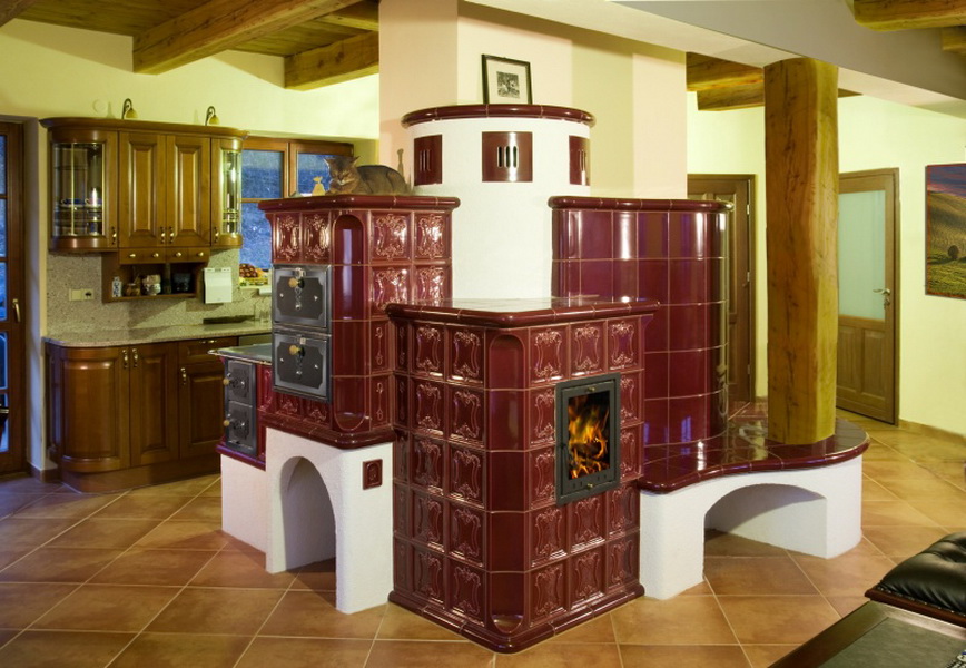 - attractive appearance is a prerequisite due to the fact that the heating device, whether it is a fireplace located in the center of the living room or a stove in the kitchen, is the main subject in the room, setting the direction for the whole design idea;
