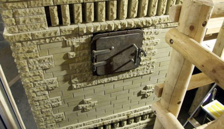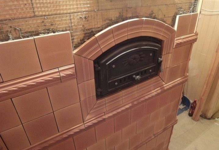 The heat-resistant tile is fastened to the steel wire installed in the seams of the masonry or it is lined with a ready-made furnace, but this process is very laborious. This type is considered the most beautiful material for decorating heating devices.