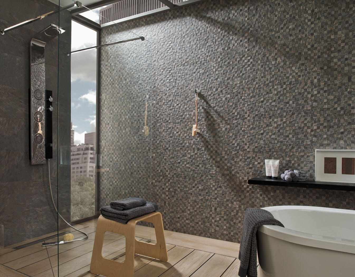 Most of the collections have a seamless texture, imitate a marble covering, wood, and also are made in various forms (square, elongated rectangular, pentagonal tiles) and have an unusual texture and relief. Marazzi collections are great for creating interiors in the style of minimalism, hi-tech, classic style.
