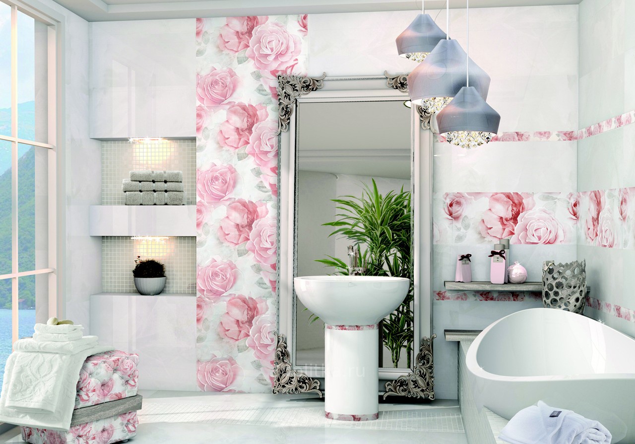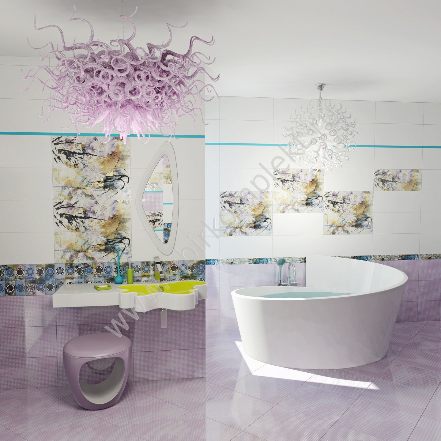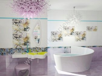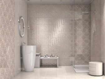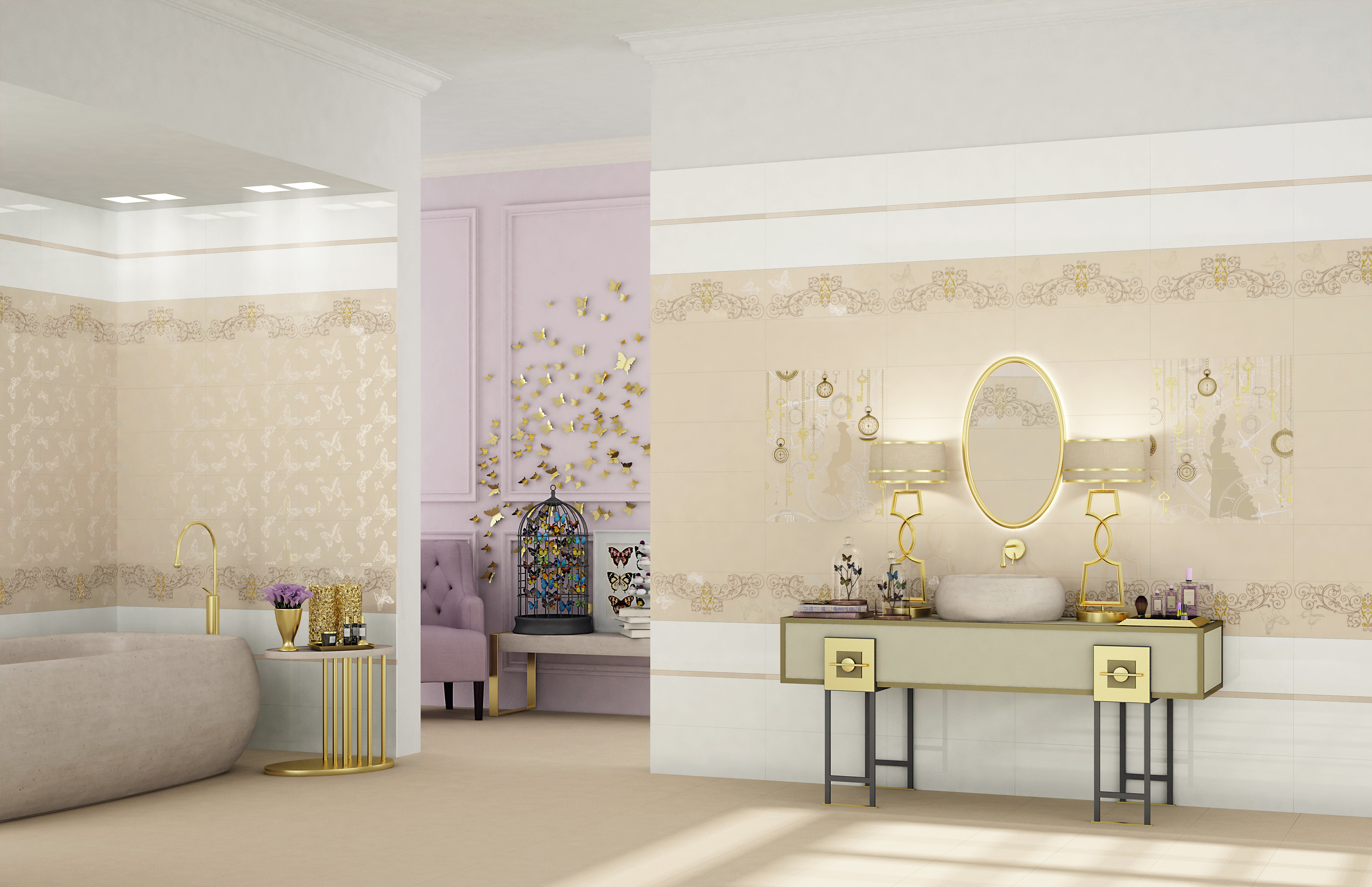 Glass - a collection that allows you to combine in the bathroom both cold and warm shades. Primary colors: gray, brown and beige. Various decorative elements will help to complement the design or complete it. The surface of the tile is glossy, can be supplemented with a small amount of mosaic.