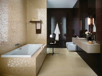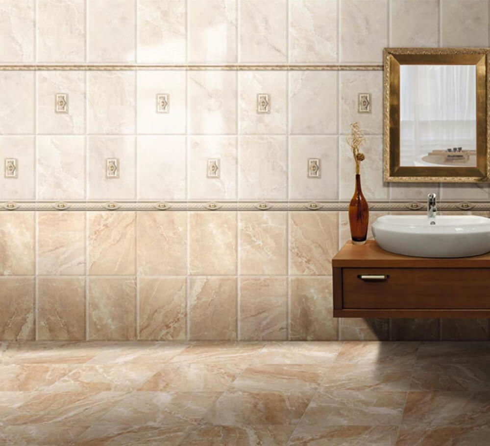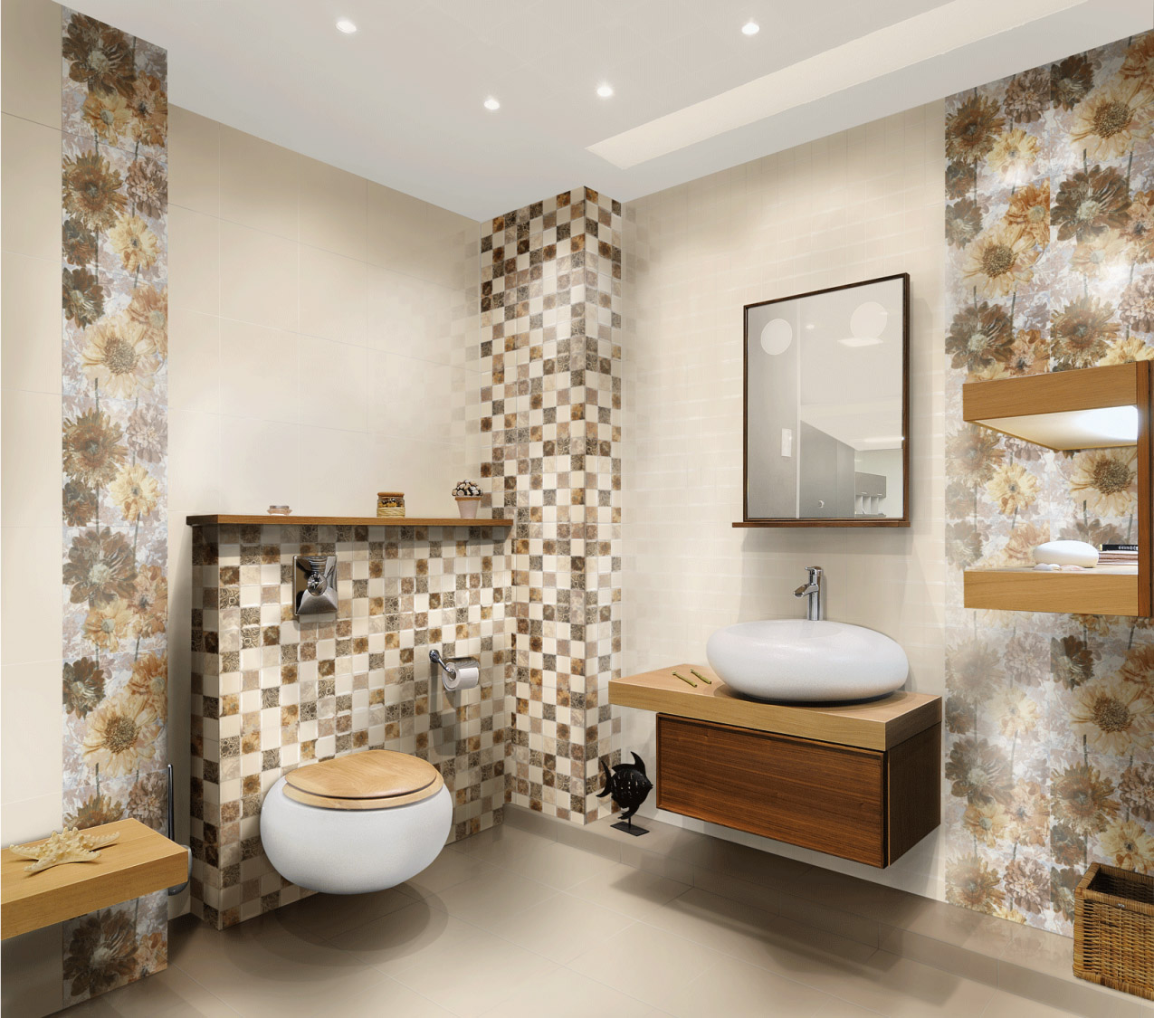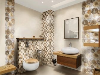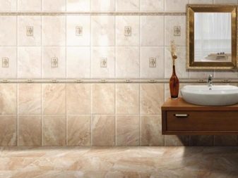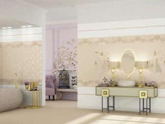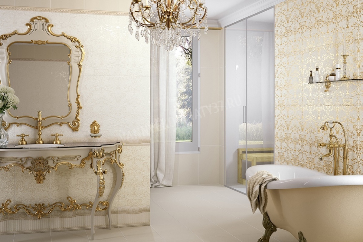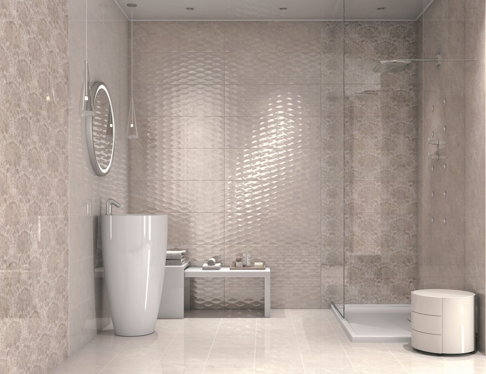Glass - a collection that allows you to combine in the bathroom both cold and warm shades. Primary colors: gray, brown and beige. Various decorative elements will help to complement the design or complete it. The surface of the tile is glossy, can be supplemented with a small amount of mosaic.