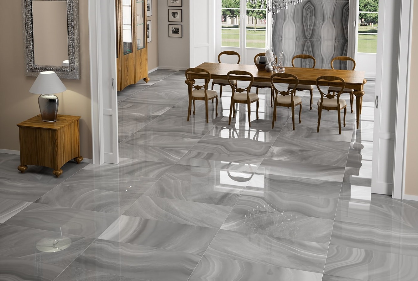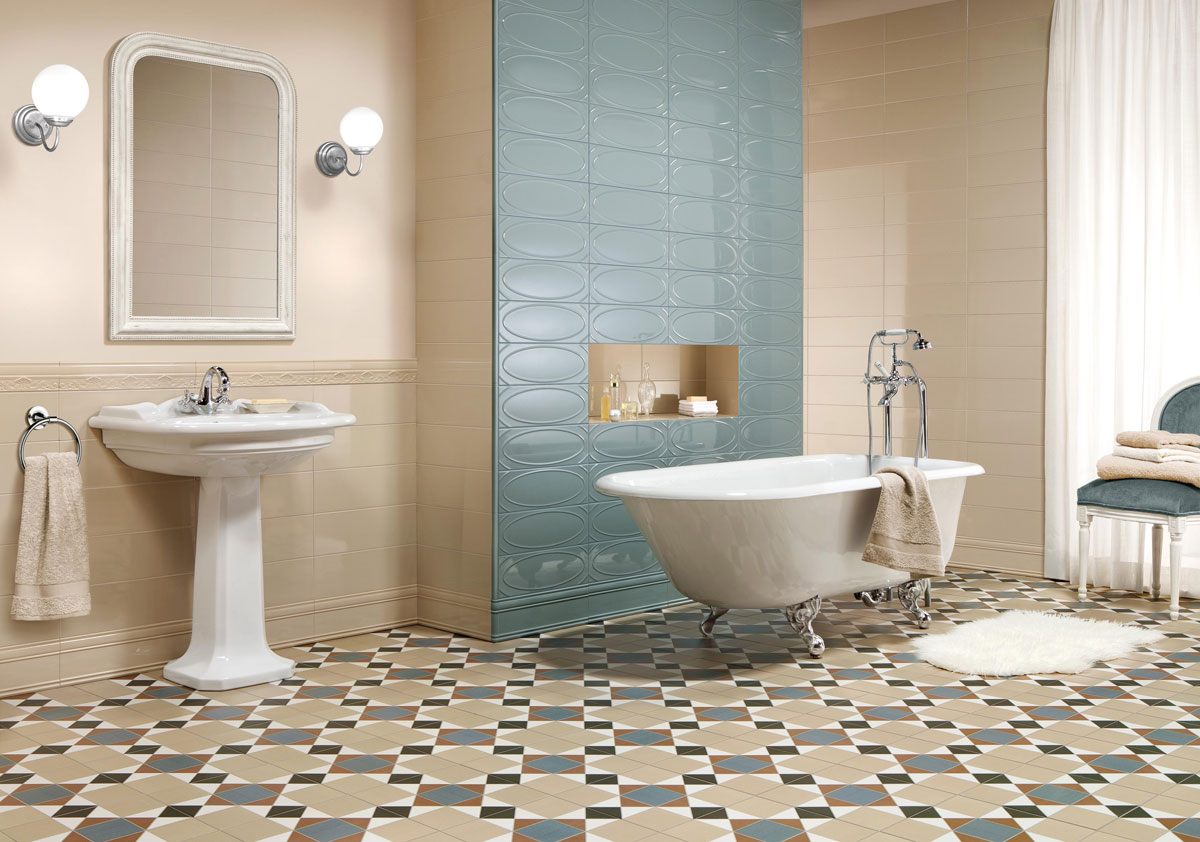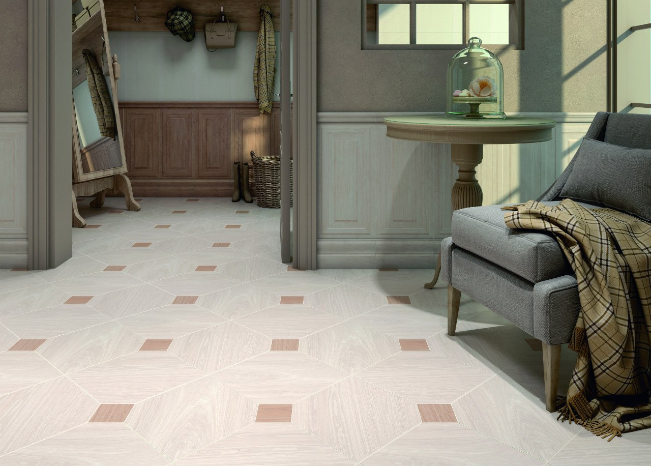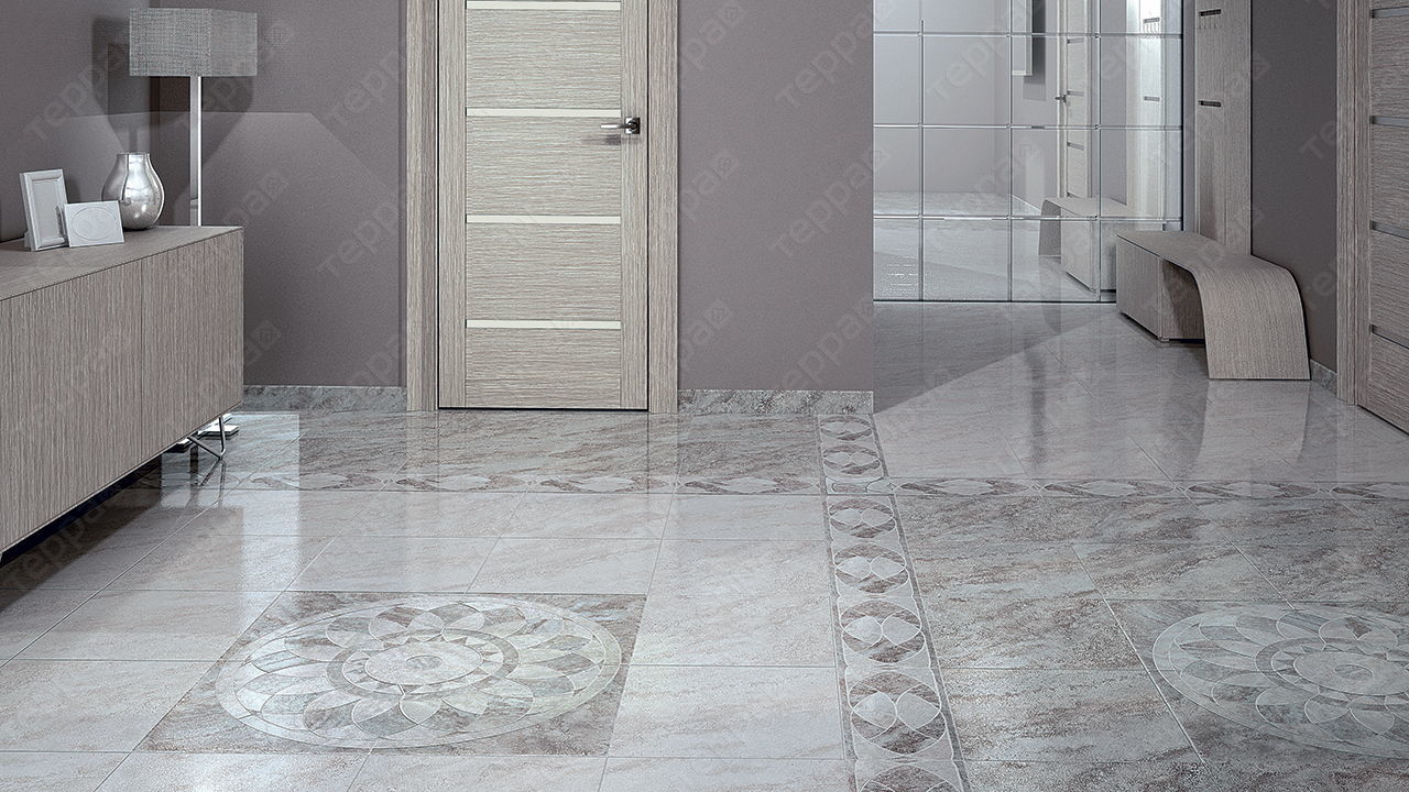 Collection Mosaic suitable for any room. This is one of the favorite choices of many designers. There is a choice of two colors: cream and blue with added gray. Thanks to a special pattern, an imitation of marble chips appears on the tile.