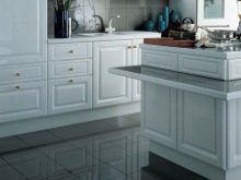 If the kitchen is not large, it would be wiser to choose the facing material of light colors. Together with the shining gloss of gloss, these shades are able to visually enlarge the space, filling the room with light.