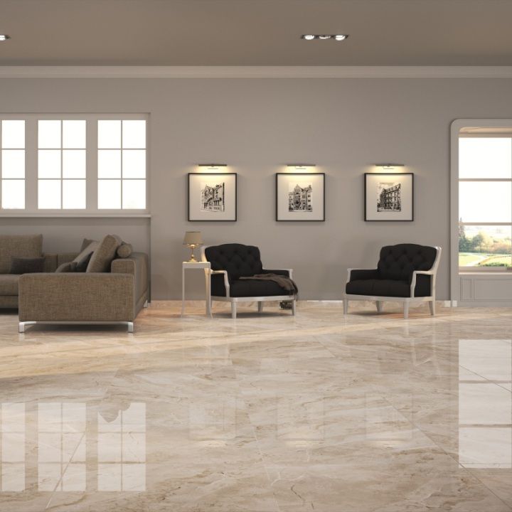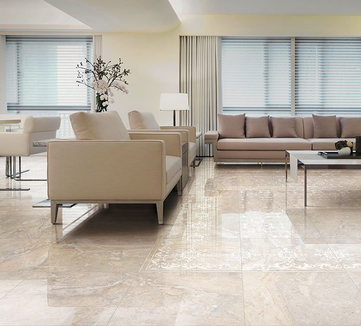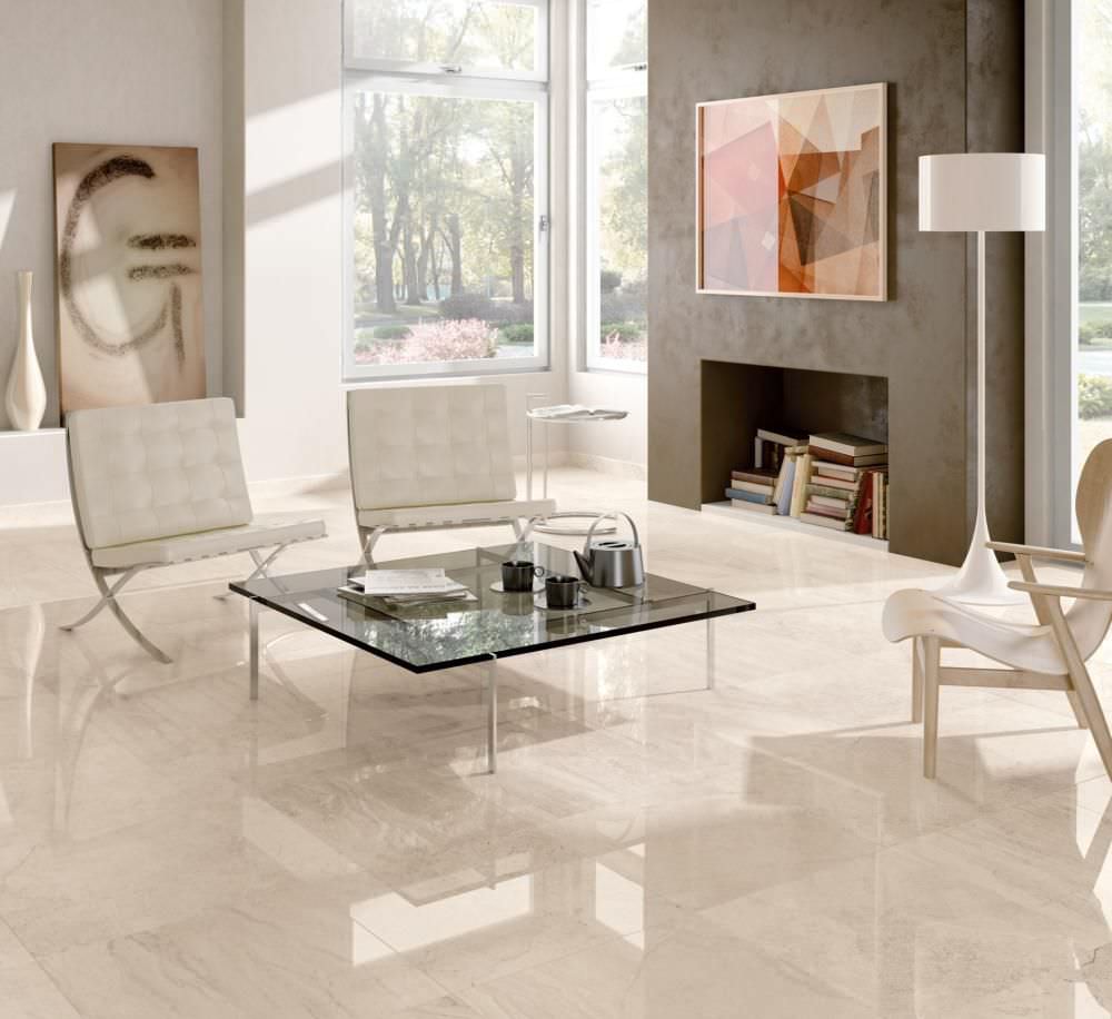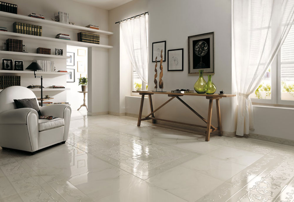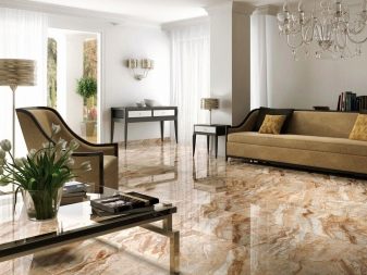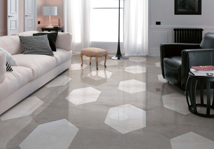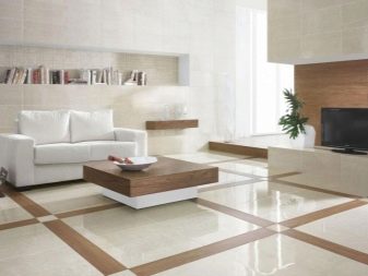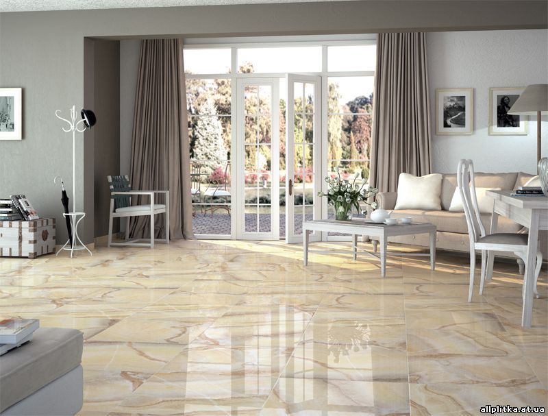 For the living room, you should choose tiles with increased strength, since the permeability here is quite high. In addition, heavy furniture is usually placed on the floor in such rooms. It is worth being especially careful while moving it. Glossy tiles are easy to scratch, and it is no longer possible to remove such damage.