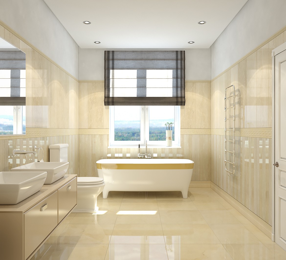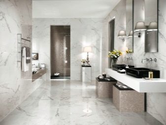 Do not forget about safety. Glossy floor tiles have a rather slippery surface. Therefore, in order to avoid injuries for the bathroom, you must purchase a special mat. If you can not pick up a product that blends harmoniously with the flooring, you can choose on a transparent model.