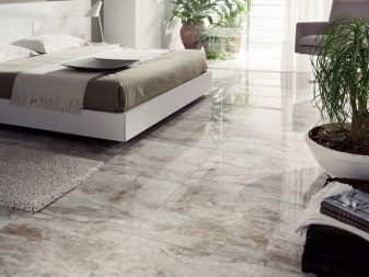 If the bathroom and kitchen benefit from the use of tiles, then it is not always possible to fit such material harmoniously into other rooms. The walls in the rooms are decorated with ceramic tiles rarely, but the glossy floors in recent times are more common. This is primarily due to the ease of care for such a surface.
