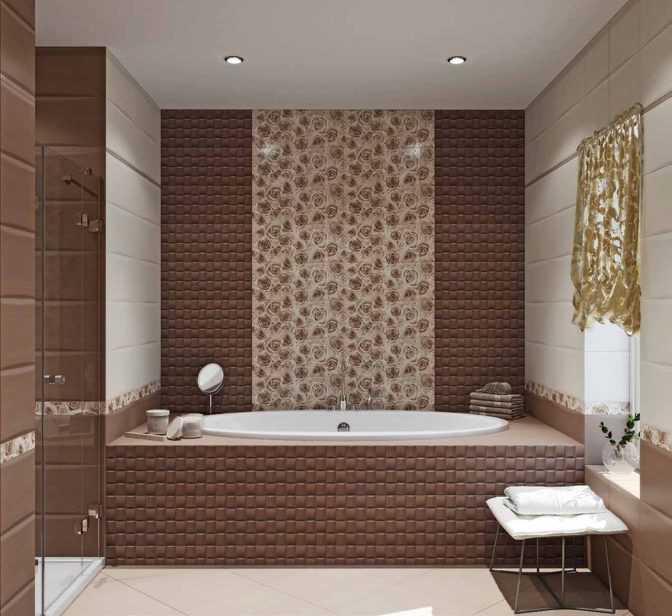 If you want summer heat and marine themes in the interior - this is the best choice, because the brand produces tiles of delicate shades in collections Caspian and Erantis. On the flowering gardens and waking up nature will recall images of snow-white camellia in the subject. Arkadia, bright fuchsia - from the collection Aquarelle, and about a magnificent rose - from a collection Bliss.