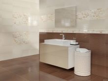 Classic style - monophonic tile or combined color shades: dark and light. To make the bathroom look more spacious, use a proven method: the lower part of the walls is in dark colors, the upper part is in light ones. The border between them can be designated a decorative border. In this case, the floor must be laid out in a single color scale or staggered. Ideal fit into such a bathroom and panels of tile and mosaic.