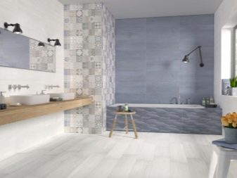Under the gray tile you can choose a white ceramic insert, and in some cases, designers recommend using wood panels - it looks very stylish.
