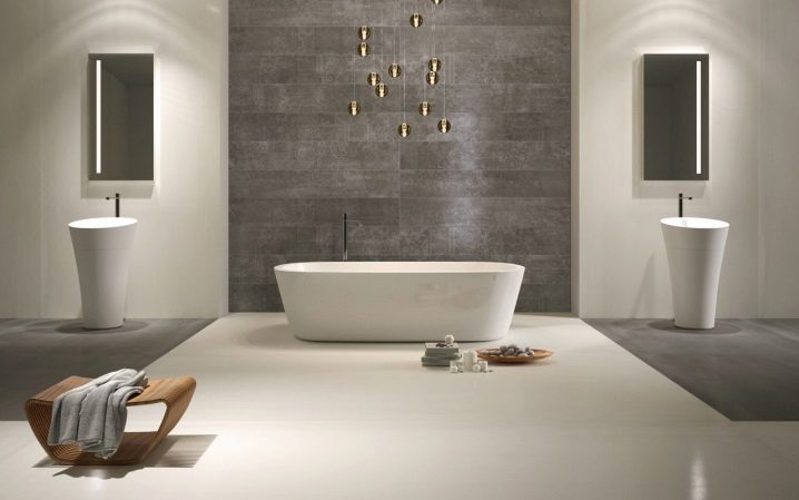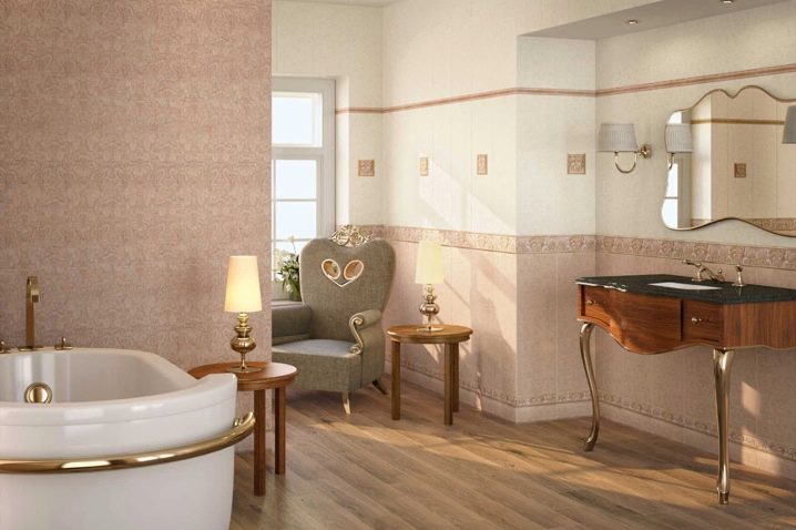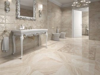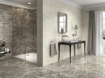 It should be noted that the tile for the flooring also has its own characteristics. The classic of the genre is marbled tile. Marble floors have been considered a sign of luxury since the days of ancient Rome. Ceramic tile is no different from such a natural stone, especially in appearance. This coating looks great not only in the bathroom, but also in large halls, on the verandas, the kitchen and office space.