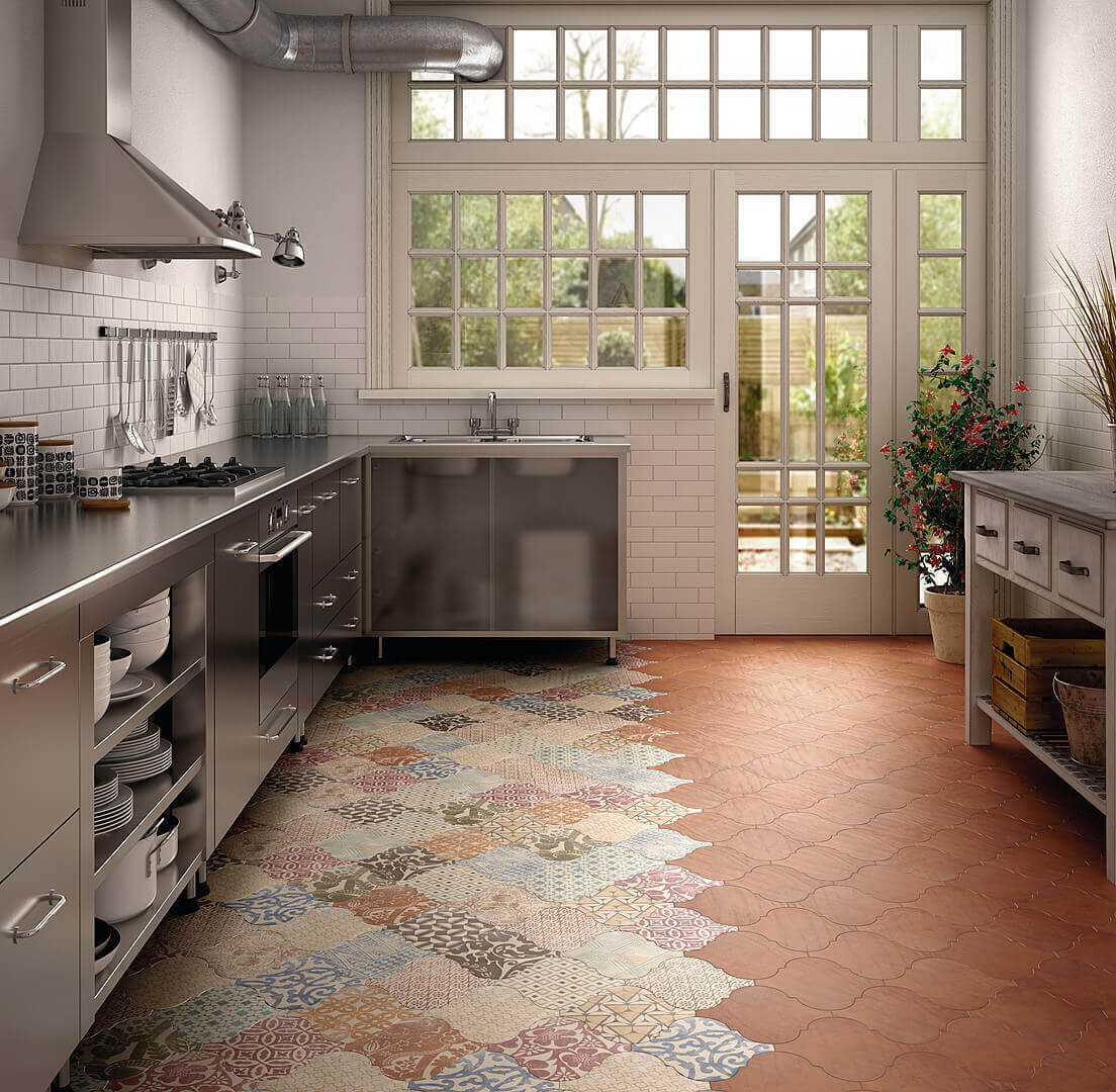Spanish tile is perfect as a kitchen apron, giving a special charm to the whole room. However, for this case, you need to choose a lined tile with a special coating, since it is necessary to take into account temperature drops and large evaporation. And the housewives often use different chemicals to clean the tiles in the kitchen, so choose ceramic packaging with a special sign A.