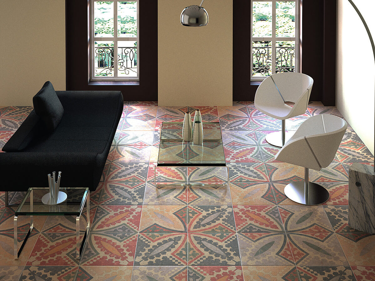 The visual effect of scuff tiles will give your patio a view of the old courtyard, where you can relax while sipping coffee.