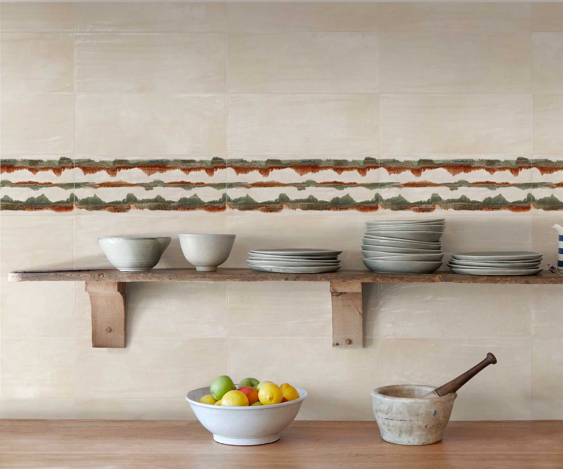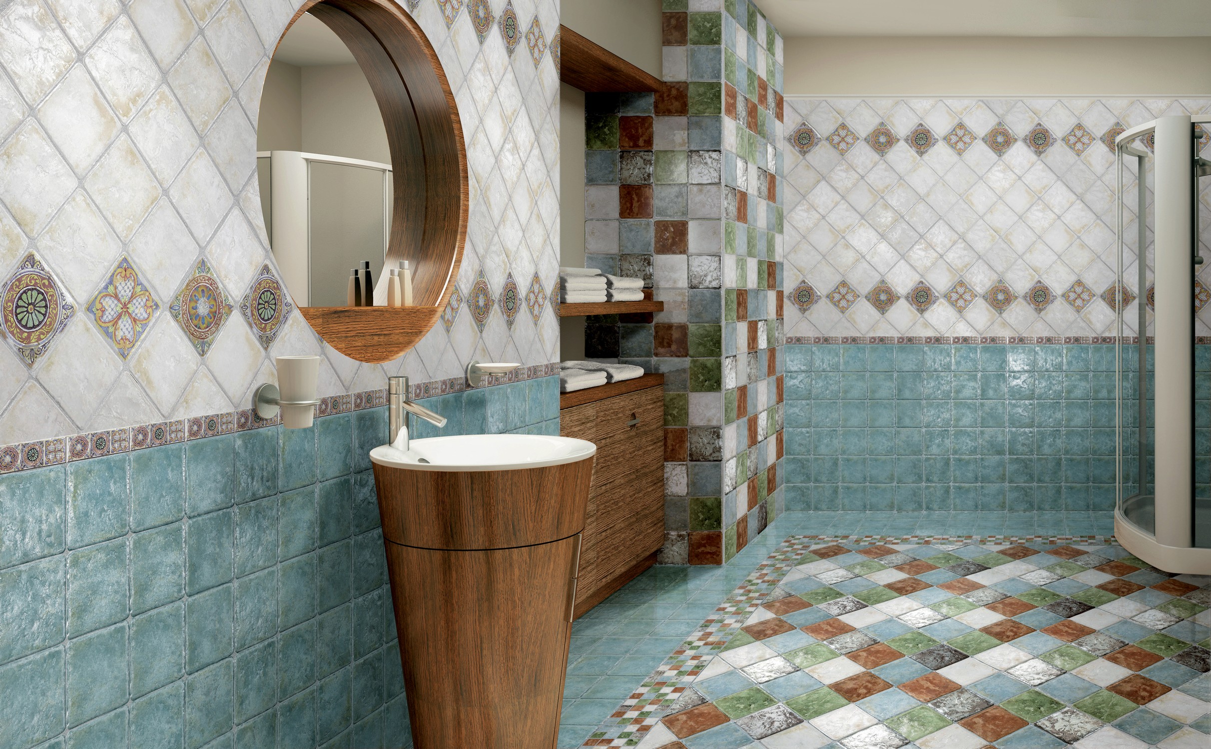 - Earthenware tiles more airy, with a white porous base, covered with colored glaze.