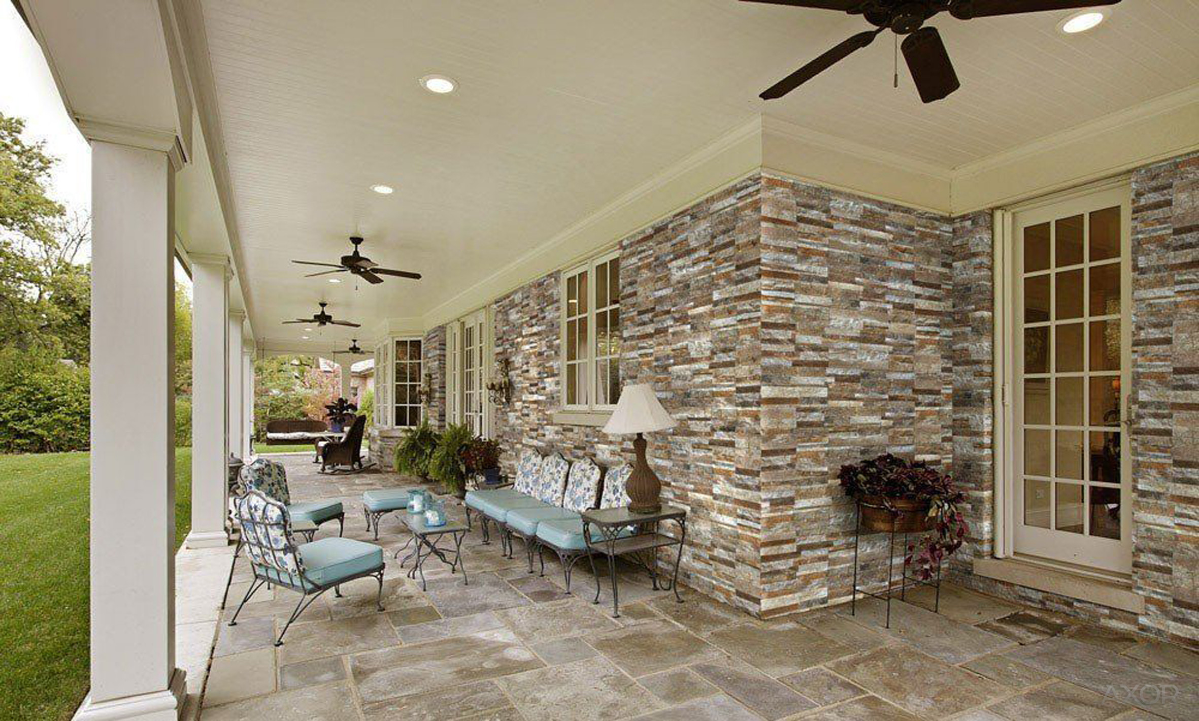 For such a recreation area, you can use tiles with imitation of natural stone - this is noble, but not cheap.