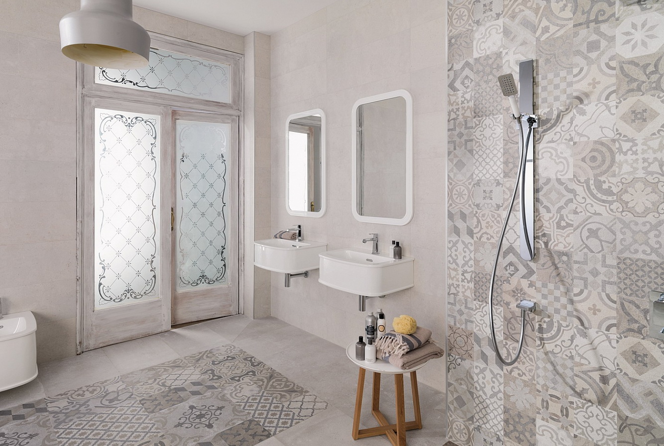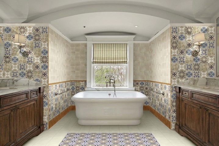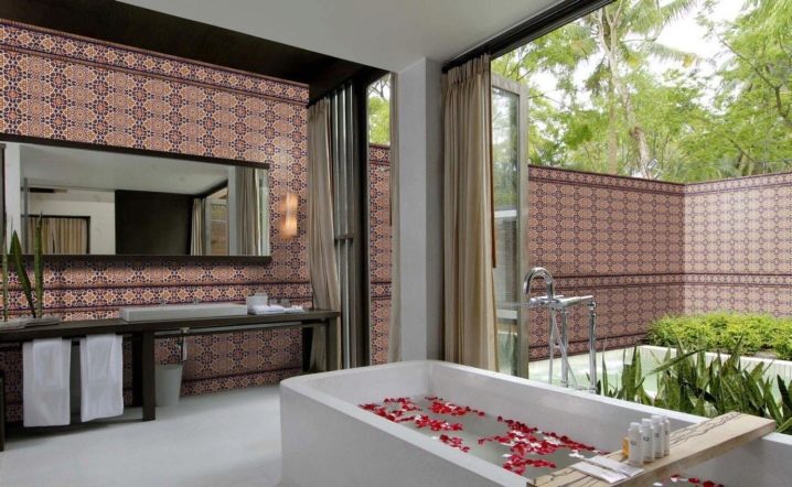 Ethno style is gaining popularity among fans of Spanish tiles. Manufacturers offer a huge number of collections with African and Oriental motifs. Imitation of animal skins or the so-called barbaric graphics will definitely become a piece of the bathroom.