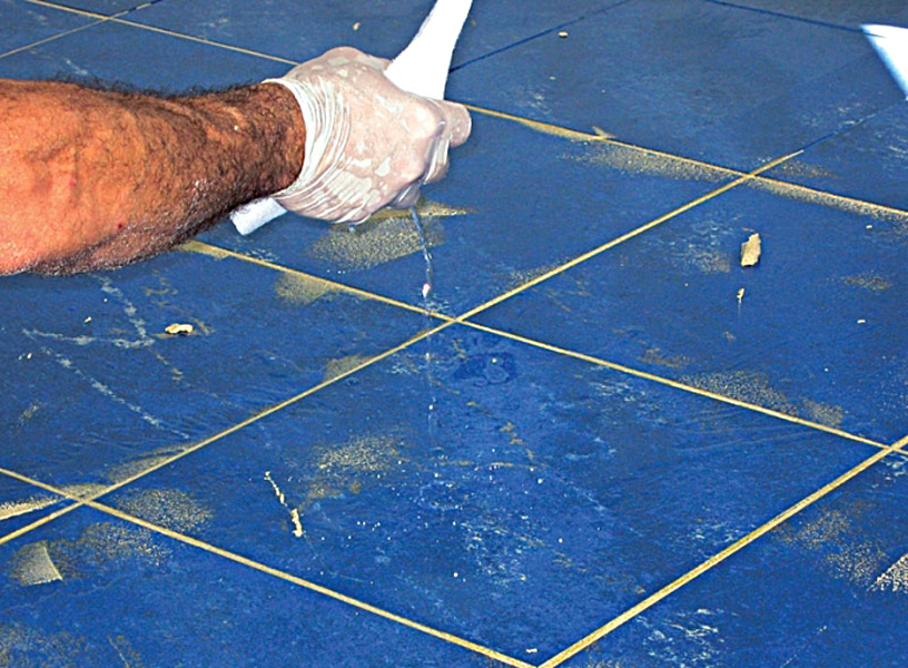 - Apply a suitable solvent to the adhesive that does not adversely affect tile materials, or pour water on the contaminated area. As a result, the glue will become softer.