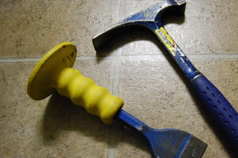 - Often, but not very hard hitting the blunt end of the tool, move it evenly forward. As a result, the dried glue will begin to break away from the tile coating.