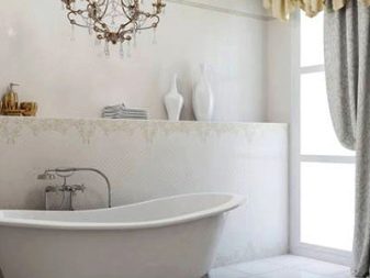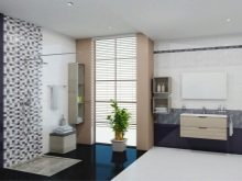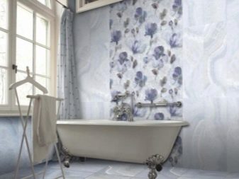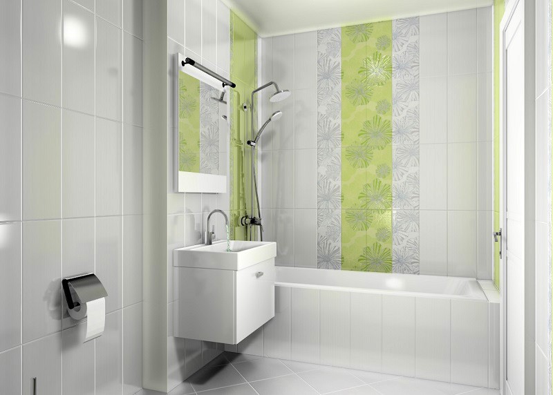 A panel from this collection, decorated with roses, looks amazing in an ensemble with background tiles. This line is an ideal option for decoration of small bathrooms.