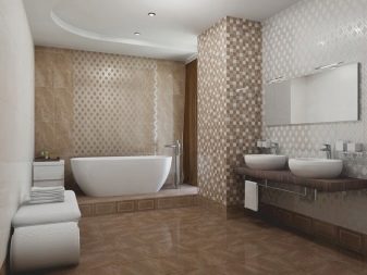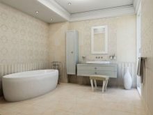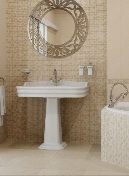 This collection is presented in delicate pastel colors. The surface of the tile very accurately conveys the texture of marble. Ceramics Eterna is perfect for decorating the bathroom in a classic style.The collection includes tiles for floor and wall use in a light beige color. Decorate the interior allow delightful decors. The mosaic print looks elegant.