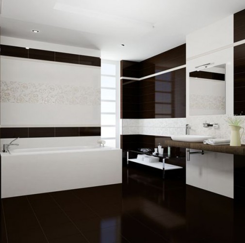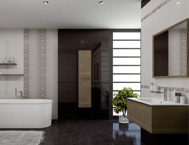 The tile from the Intenso collection is made in two colors: brown and beige. This tandem looks very beautiful. By combining these colors, you can make a zoning of the space or place accents in the interior. The collection of ceramics Intenso is ideal for the embodiment of art decor.