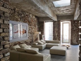 - Industrial style loft, imitates abandoned factory premises. Practiced rough rough surface. In this case, several types of facing material are involved.