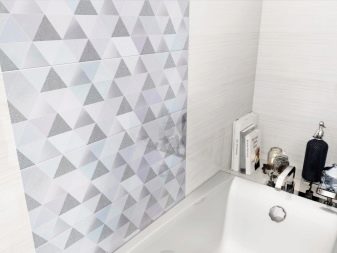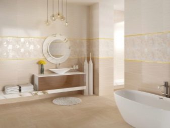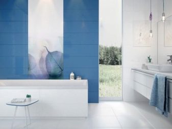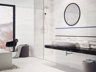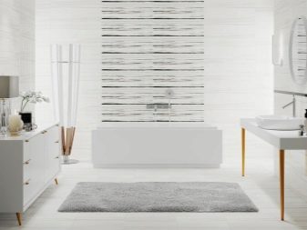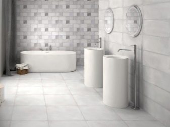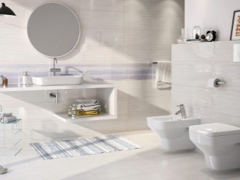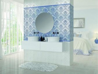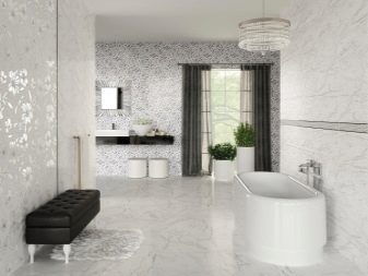 - For a concise, modern or classic bathroom design can be the ideal floor Artistic Way. The combination of glass borders, decorative inserts in the form of pencil sketches with imitation of white marble will make the room bright and elegant.