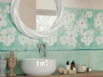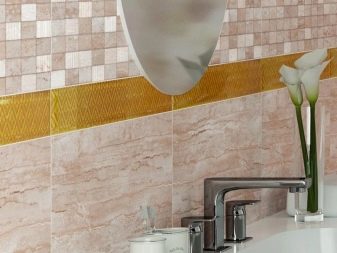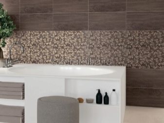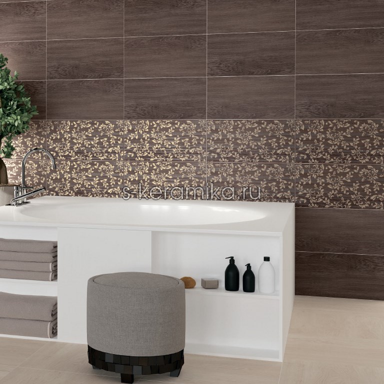 - All variants of valuable wood copies and wall tiles Tessa. Facing, at the suggestion of the manufacturer, can be supplemented with floral inserts, panels, brown-gold pattern.