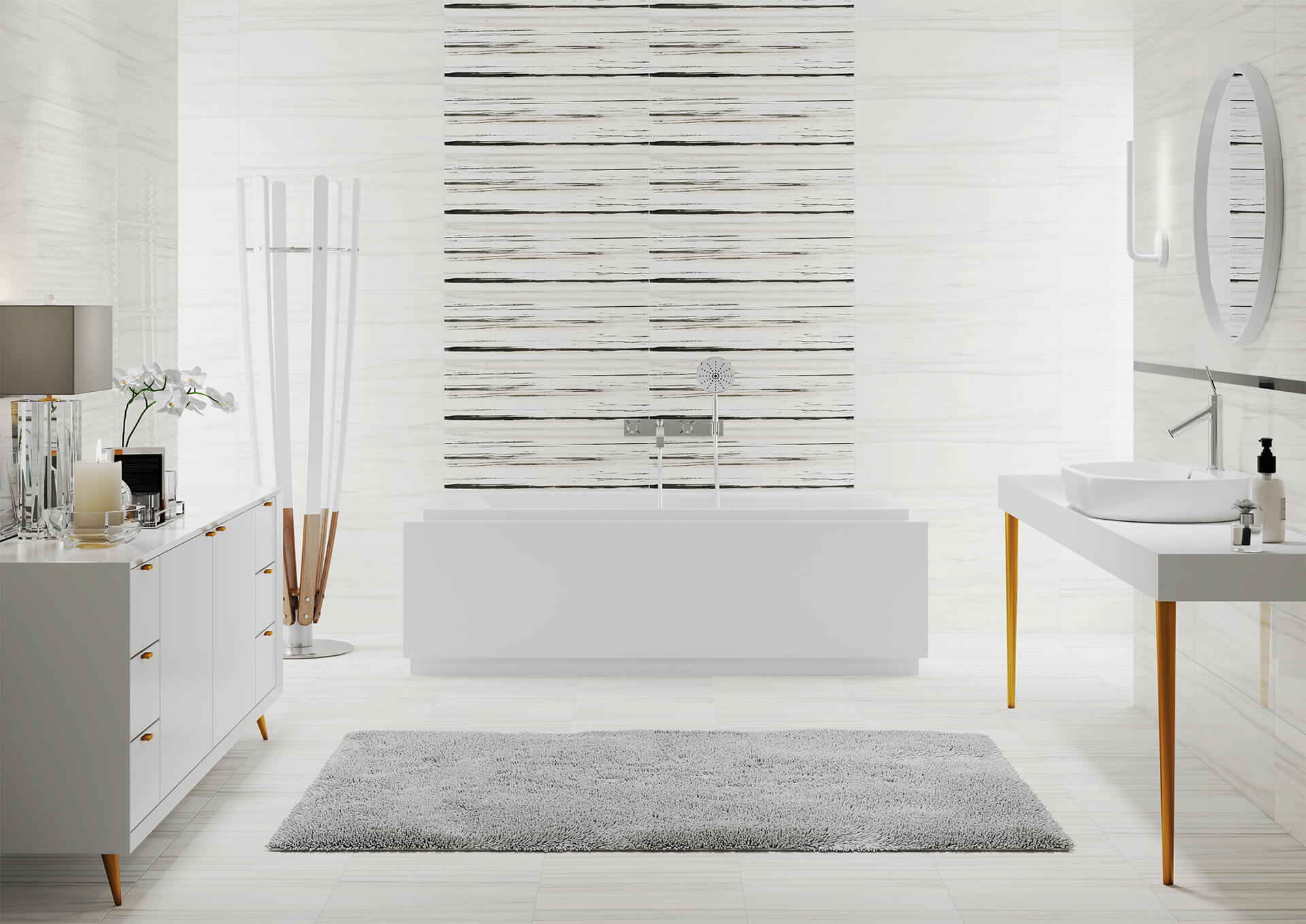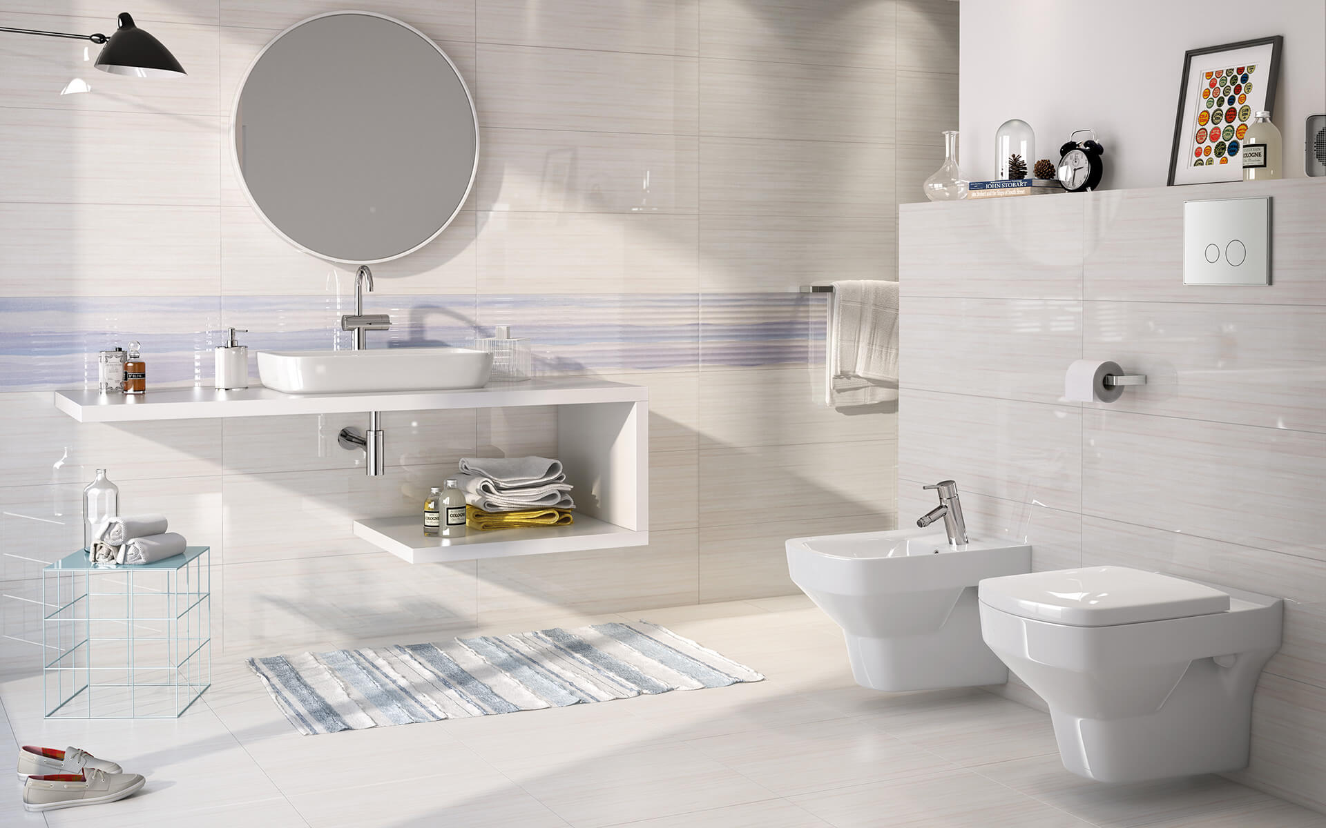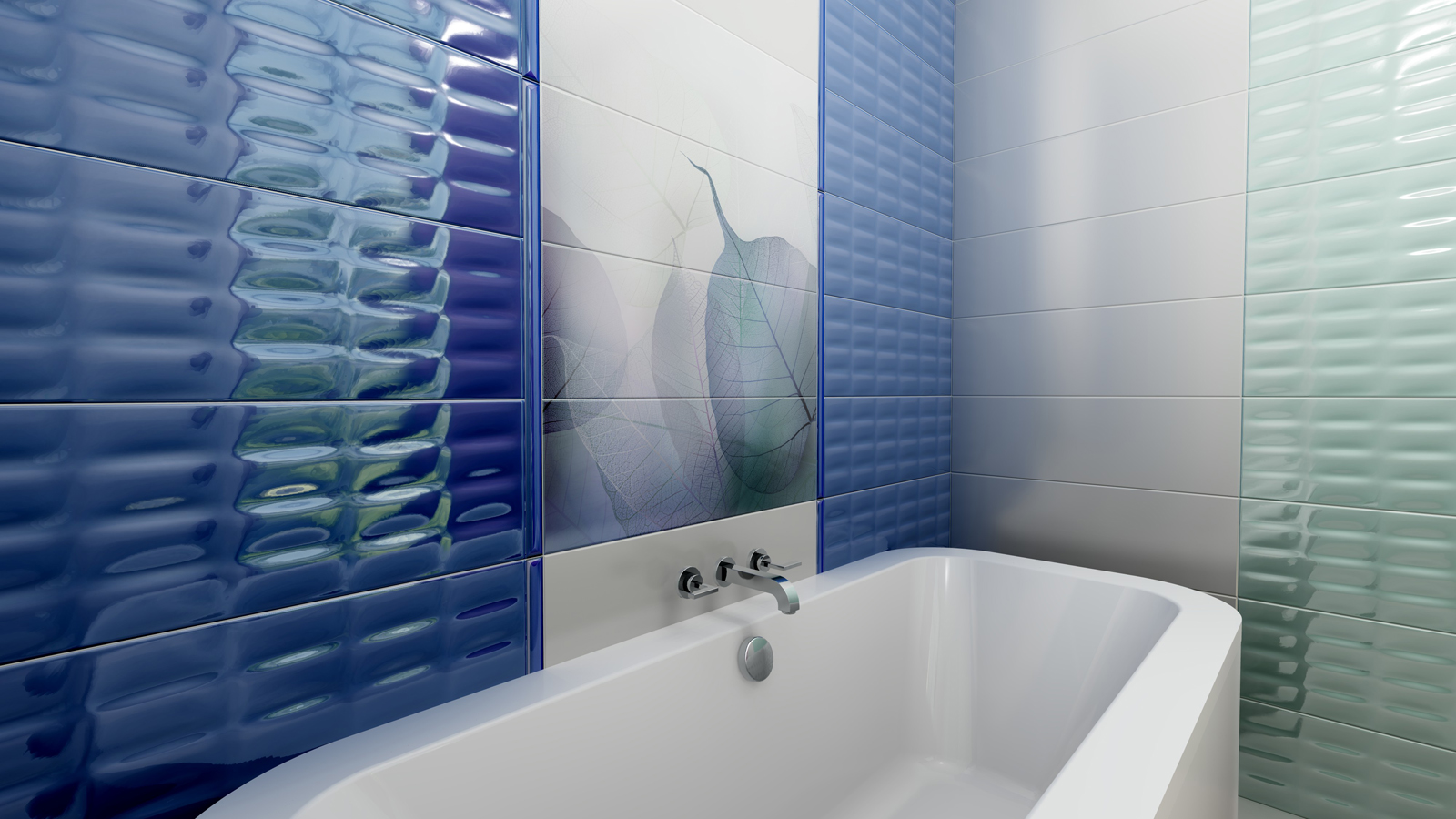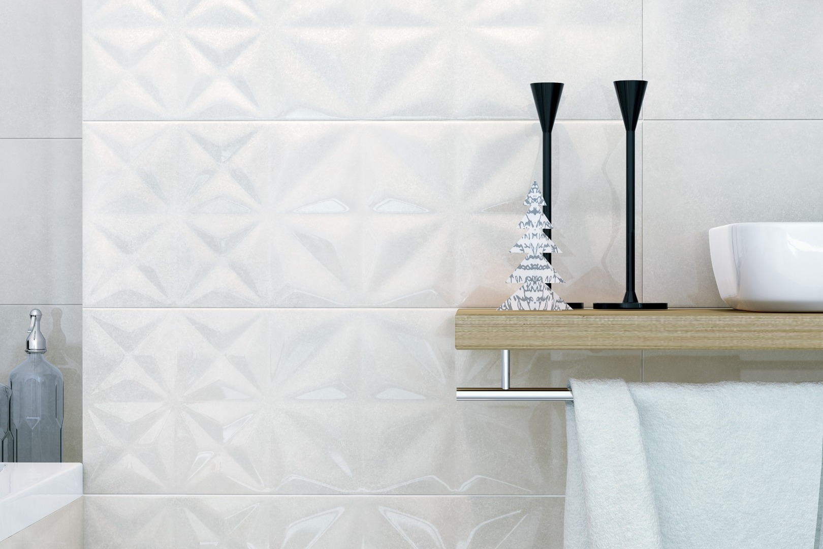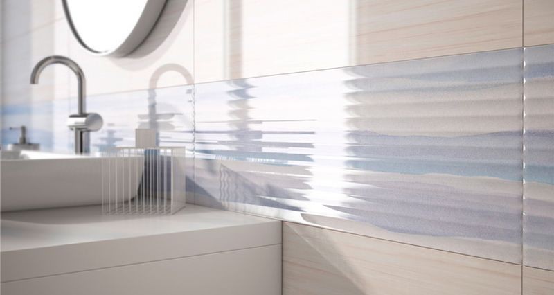 - For the series Modern characterized by light white, blue and pink shades of smooth tile in combination with embossed and colored decor.