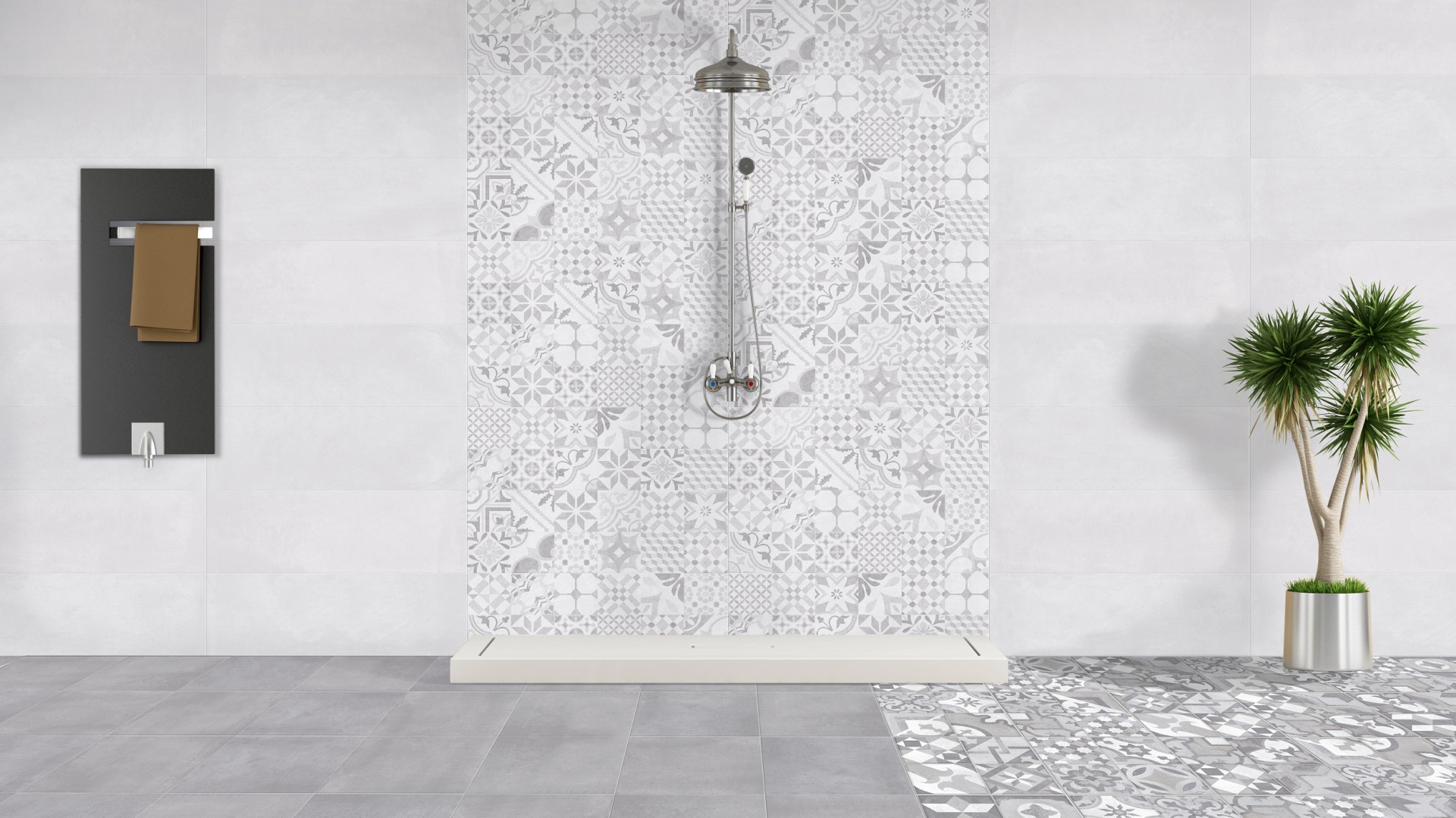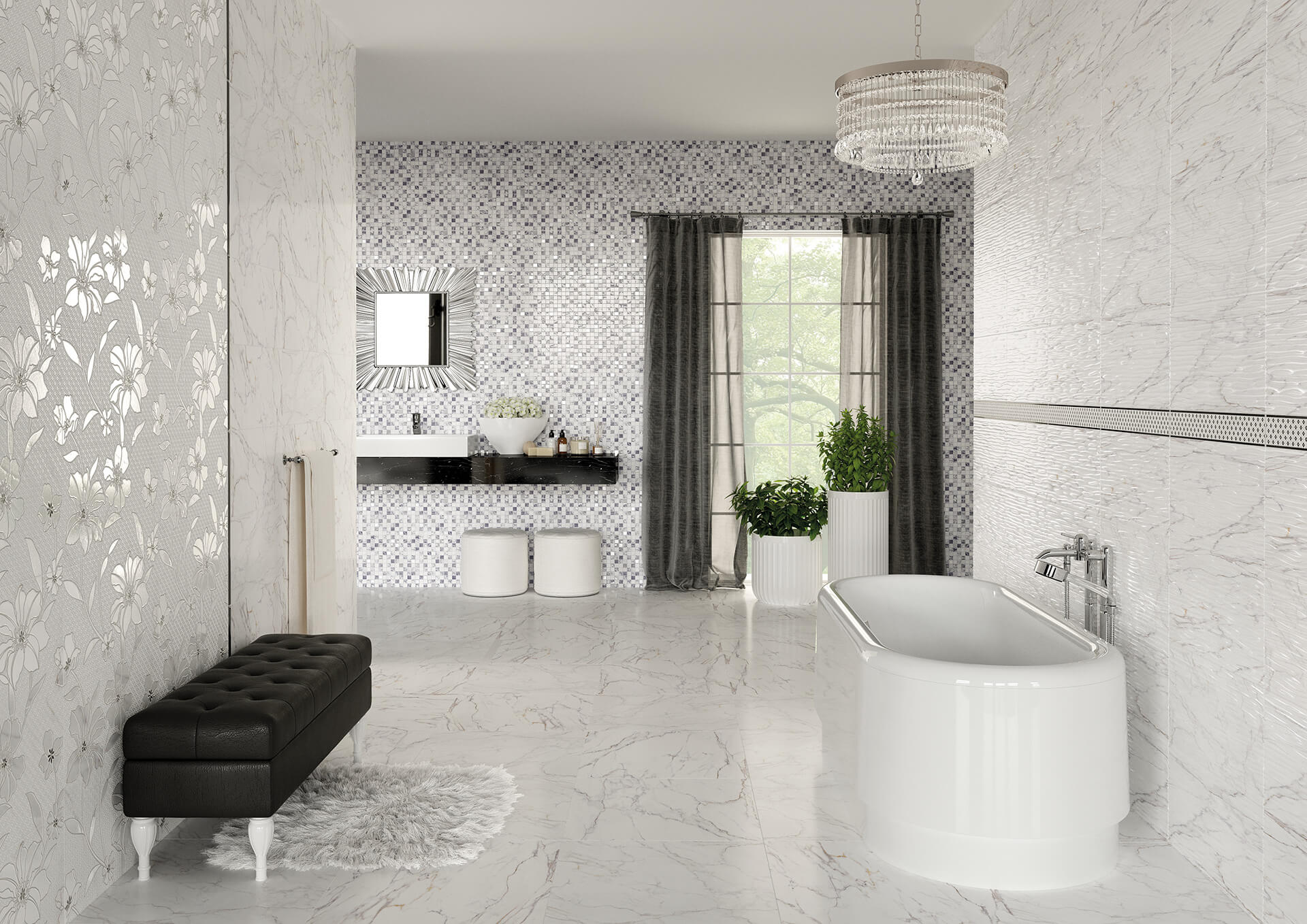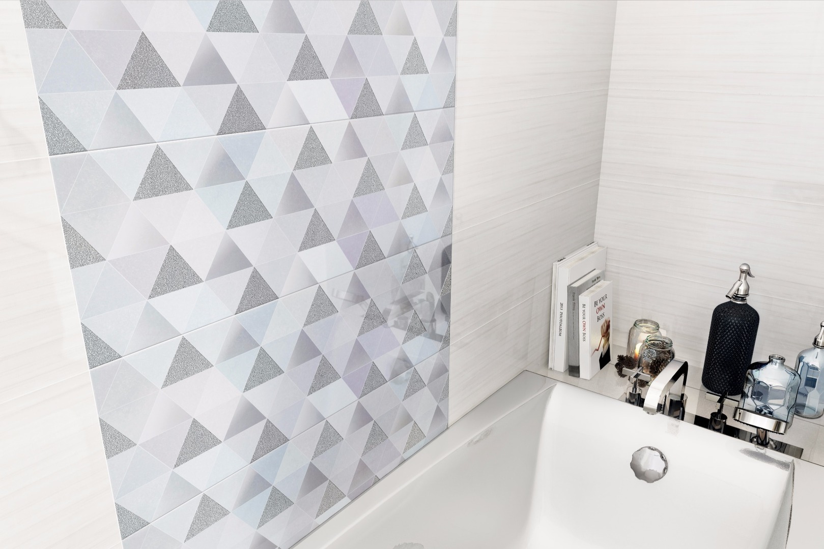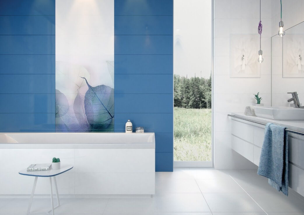 - For the series Modern characterized by light white, blue and pink shades of smooth tile in combination with embossed and colored decor.