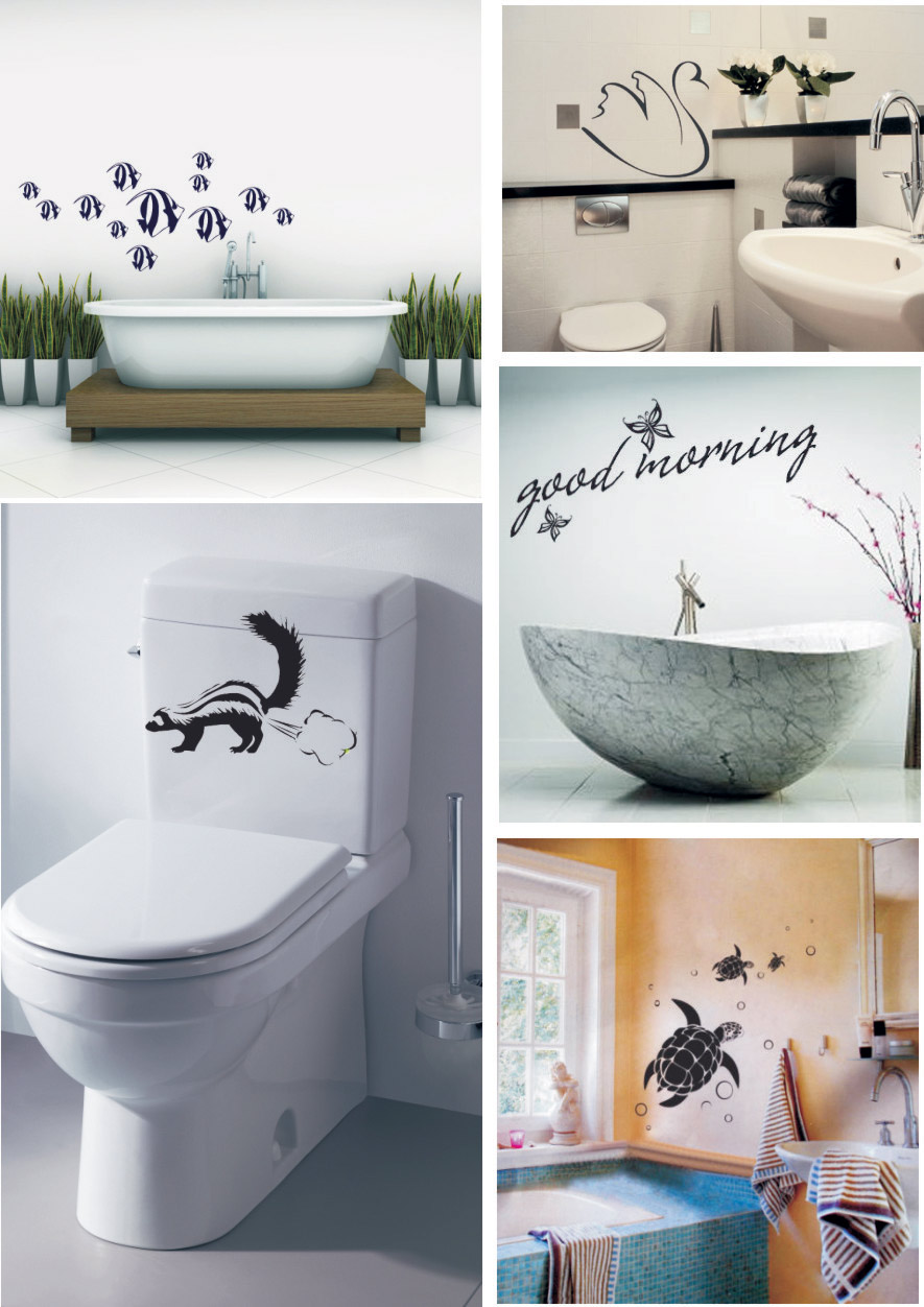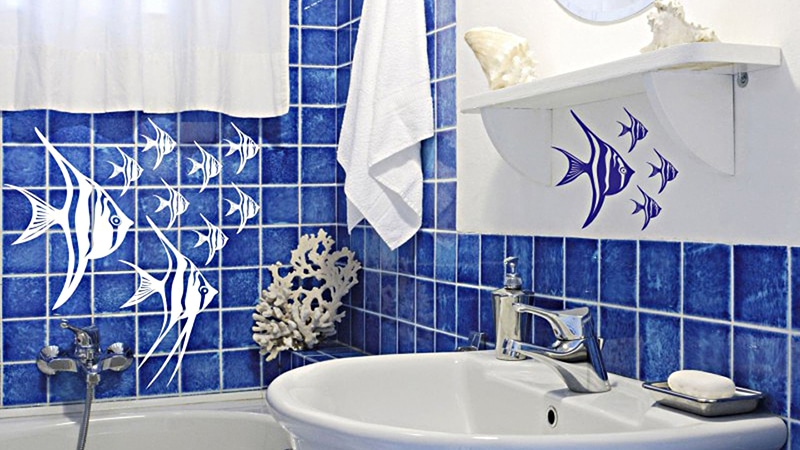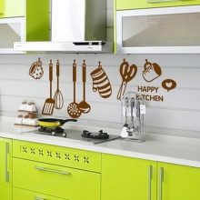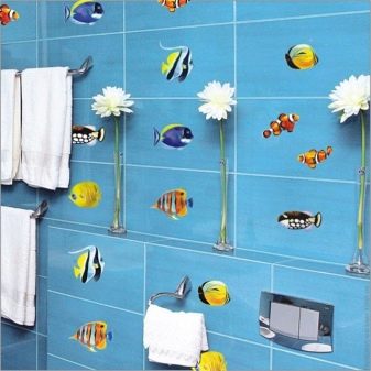 With the help of decorative stickers you can realize a lot of original ideas. The most popular topics for bathrooms and kitchens are the following options:
