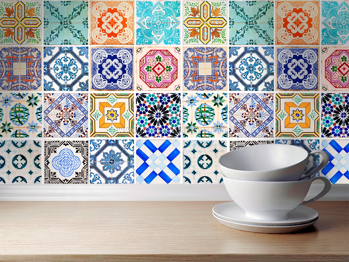 - Bright, juicy and motley stickers perfectly complement the tile in soothing shades.
