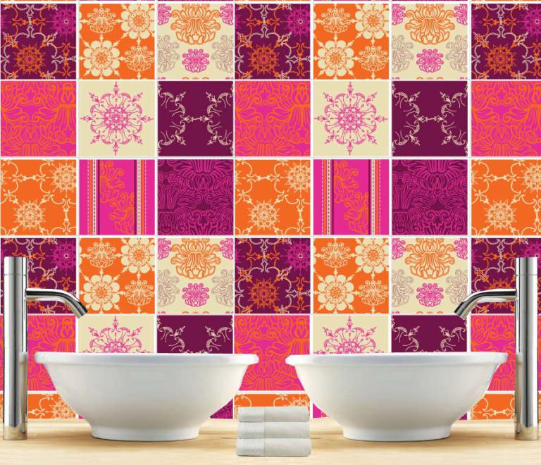 - Do not choose very dark and saturated stickers for the already bright tiles, because the main pattern can be lost on such a background. Here it is best to choose something contrasting.