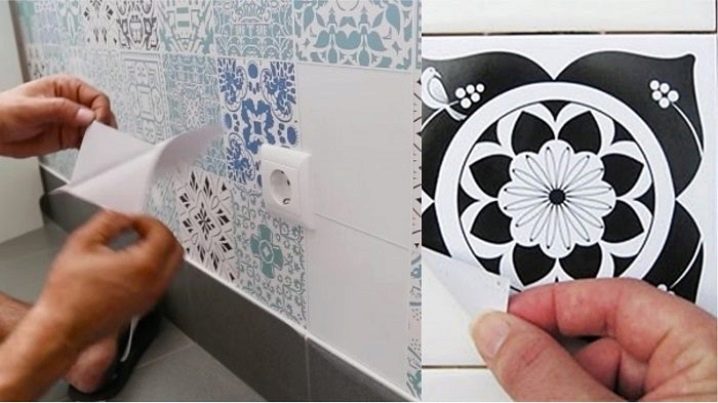 On the Internet, you can find a lot of ideas for decorating tiles with decorative stickers.