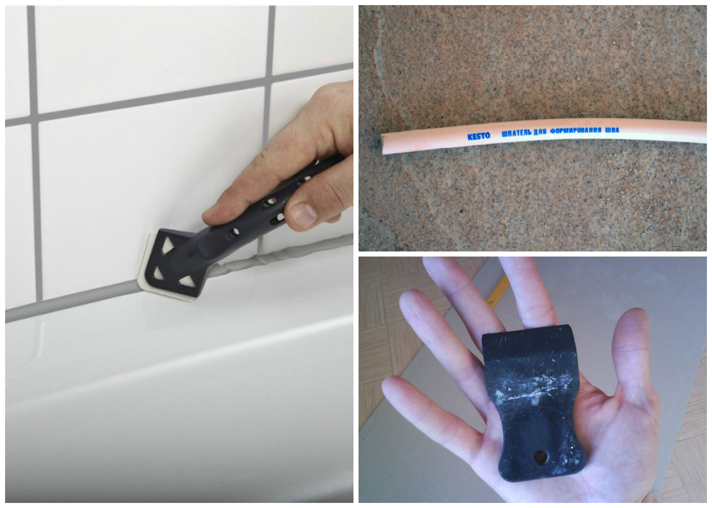 - Rubber spatula small. With it, you can gently and evenly fill the seams without various damage.