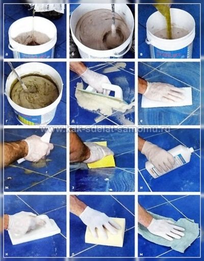 The remaining solution should be immediately removed with a spatula, dumped into the total mass and reused for its intended purpose.In order to make sure that the shading of the grout matches the color of the tile, you can embroider the trial area. If the tone is chosen unsuccessfully, then the seam is released from the solution using any sharp object, until the composition is set.