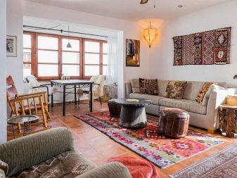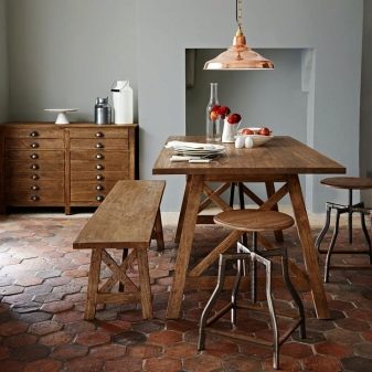 - With the dominance of tiles as a finishing material, furniture and other interior details are recommended to take natural shades, simple geometric shapes, without gloss.