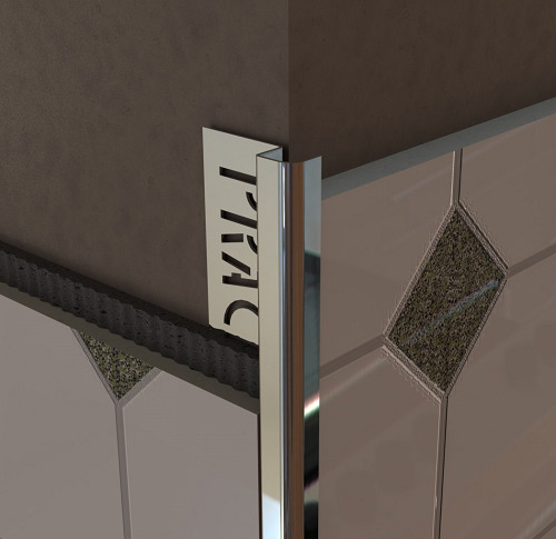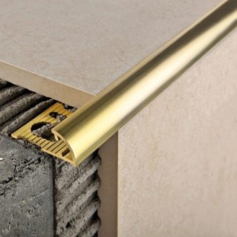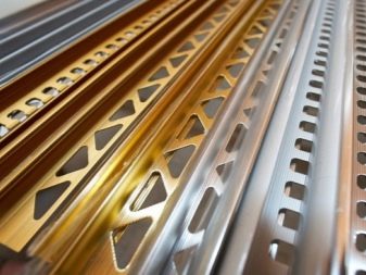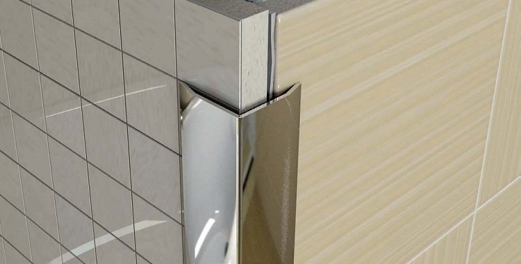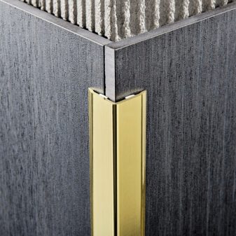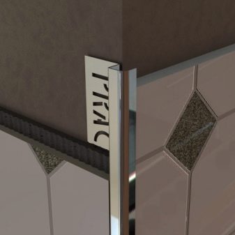 Metal (aluminum, stainless steel, brass) It is universal, as its color will perfectly fit into any color design. It also combines well with various structures of the room, made of metal (shower and other plumbing). Brass corners are pretty heavy. They are used for bulky tiles. Stainless steel products are extremely light, durable, durable and resistant to corrosion.